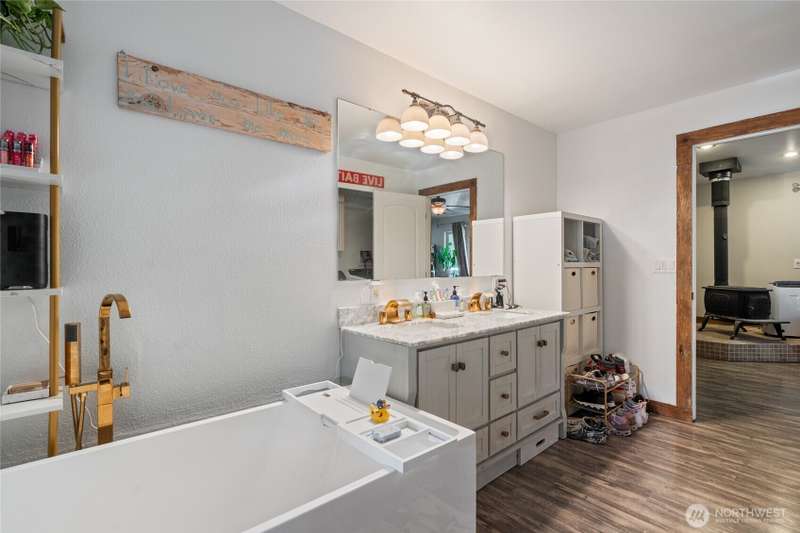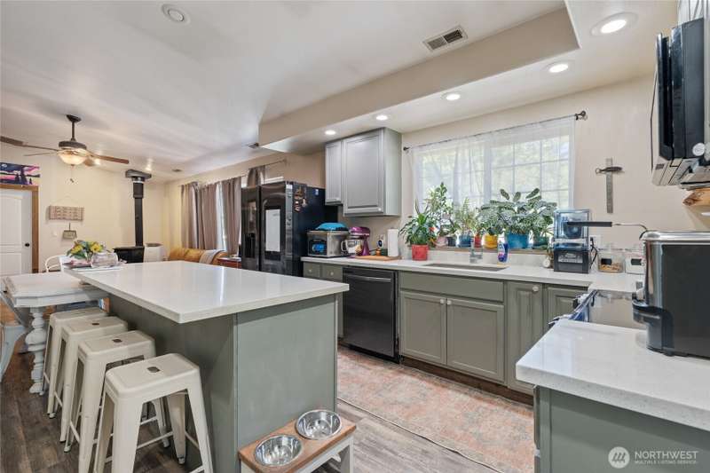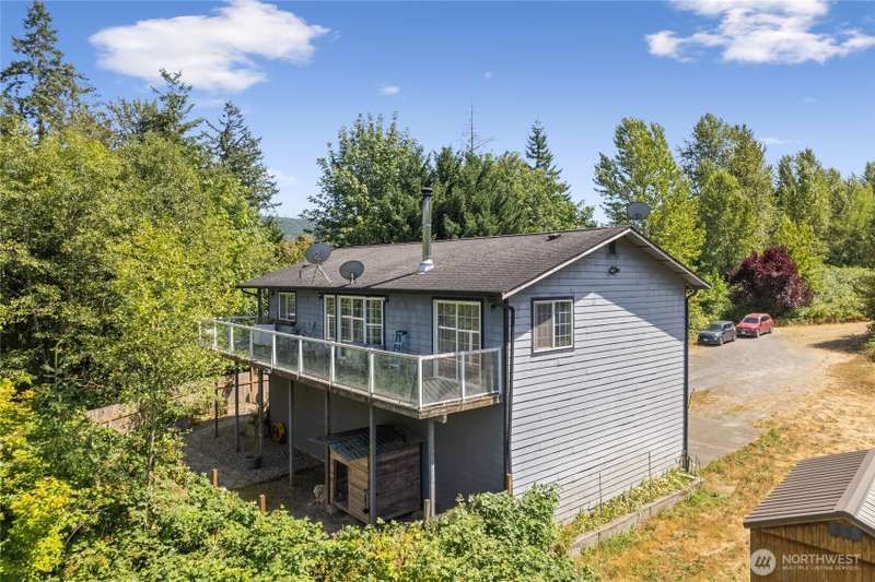Welcome to your dream property on a gated 10.5 acres with 3 bedrooms AND a second building site ready to go with all utilities and separate address - perfect for guests or rental income! 1,232 sq/ft shop & hickory storage shed are perfect for storage & projects big or small. This must-see home has vaulted ceilings making the home feel spacious and light while the wood stove keeps the home cozy. Kitchen offers thick quartz counters, glass-blown doorknobs, and plenty of storage. Primary bdrm and living room have doors that lead to the large deck that lets you soak in all the surrounding nature. Large bath has marble double vanity and deep soaking tub. John Deere to stay with home for easy maintenance. Seasonal views of lake and the mountain!!
