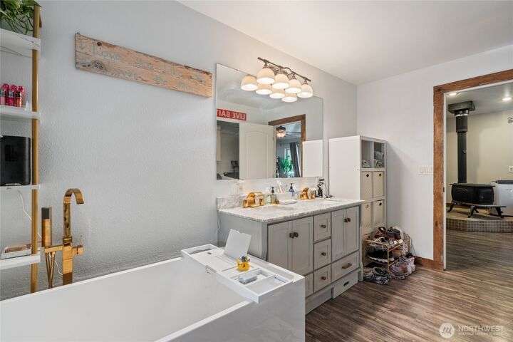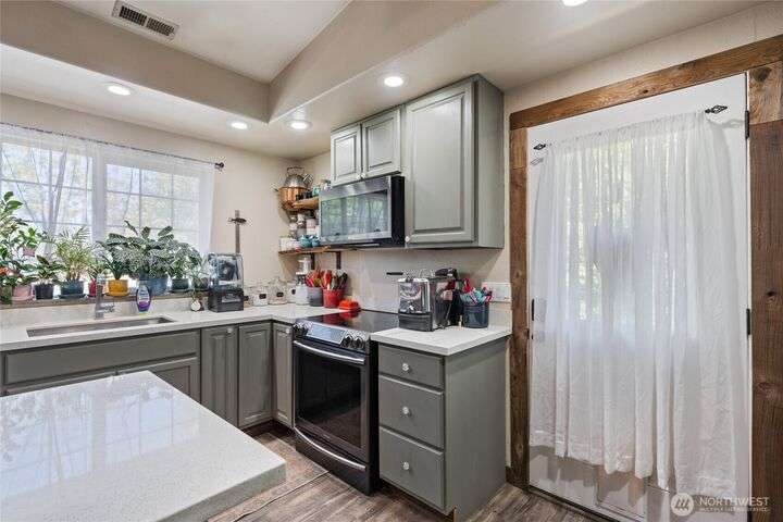 Welcome to your dream property on a gated 10.5 acres with 3 bedrooms AND a second building site ready to go with all utilities and separate address - perfect for guests or rental income! 1,232 sq/ft shop & hickory storage shed are perfect for storage & projects big or small. This must-see home has vaulted ceilings making the home feel spacious and light while the wood stove keeps the home cozy. Kitchen offers thick quartz counters, glass-blown doorknobs, and plenty of storage. Primary bedroom and living room have doors that lead to the large deck that lets you soak in all the surrounding nature. Large bath has marble double vanity and deep soaking tub. Seasonal views of lake and the mountain!!