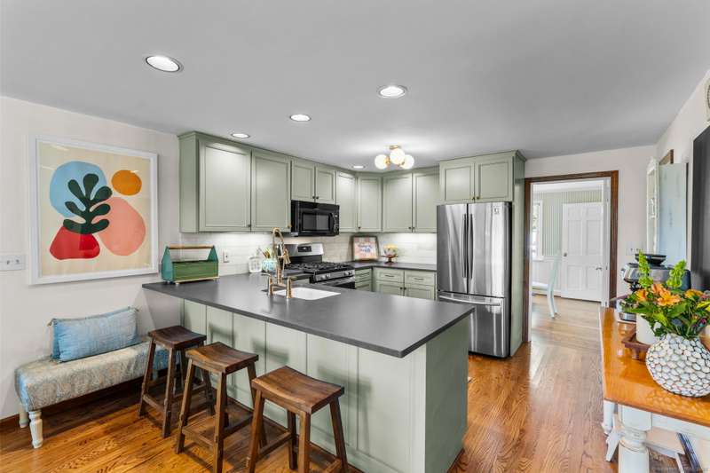 Home truly is where your heart will be, in this "Story Book Cape". Sun-filled open layout you will love! Fabulous location nestled in the quiet neighborhood of Wells Quarter Village. Lovely peaceful lot provides a private backyard. Versatility of One floor living if desired. First floor will surprise you with a spacious addition family room open to a beautifully updated kitchen. Cathedral ceilings with abundant floor to ceiling windows and slider to patio and private back yard. Main floor living room with fireplace and adjacent screened in sunporch. Formal dining room off the kitchen can also be used as a second first floor bedroom if needed. Second floor holds two spacious bedrooms and a gorgeous remodeled Full bath. A wonderful sun-filled loft space off one bedroom serves as a perfect home office or sitting room. Plenty of closet space can be found in this cape. Full basement including below the addition, which provides additional storage or potential space for a great home gym. Tast