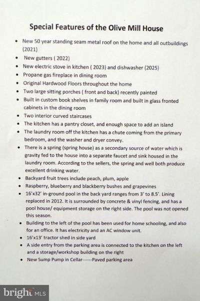 The Olive Mill House is a beautifully preserved Four-over-Four colonial farmhouse in the heart of Banco, Virginia. Originally a Sears Kit Home, it was delivered by train to Orange, VA, then transported to Banco and assembled on site. Built nearly a century ago, the home was added to the property by the Tysinger family, who operated the Olive Mill—grinding cornmeal just steps away. This 4-bedroom, 2-bath home rests on 2.4 total acres (two parcels) and has gracefully stood the test of time, retaining its original hardwood floors, front and rear staircases, high ceilings, and welcoming porches. Historic charm is found in every detail—from the antique doors and intricate moldings to the portrait rails and beautiful woodwork. Over the years, the Olive Mill House has served not only as a residence but also as a bed & breakfast, offering guests a taste of Madison County';s rich history. Outdoors, you';ll find a backyard in-ground pool—perfect for summer gatherings—set against the backdrop of one of Virginia';s most picturesque regions. The home is located on a Virginia Scenic byway, close to White Oak Falls, Old Rag, and Graves Mtn Lodge. This rare find combines historic craftsmanship with modern comfort, making it a truly special place to call home. Property will be active on the market on Sept 3rd , 2025. Three Bedroom Septic.