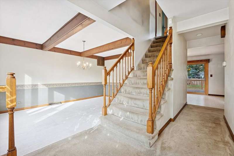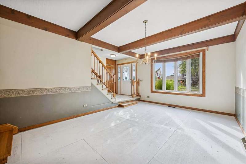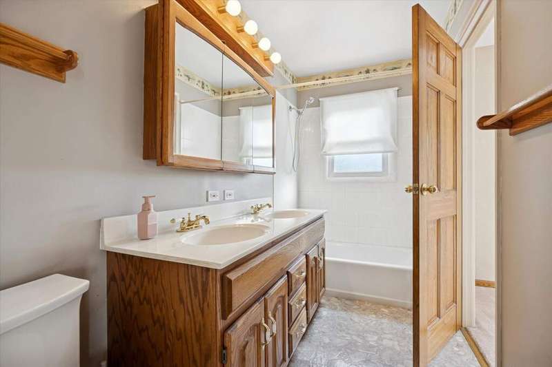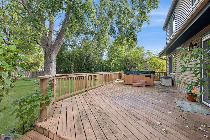 This charming 1.5-story home offers 3 bedrooms, 2 full baths, and 1,800 sq. ft. of living space, plus a full, unfinished basement. While the home is ready for modern updates, it is solidly built and well-maintained, providing a great foundation for your vision. The main level features a spacious layout with the kitchen and eating area leading into the family room. The separate dining room could become your formal living room or home office. The first-floor primary bedroom has a shared full bath. Upstairs, you'll find two additional bedrooms, a full bath, and a versatile den/family room area - ideal for a playroom or lounge. A separate laundry room off the kitchen adds convenience and a true mudroom feel as it leads to the attached garage and backyard. Enjoy your backyard retreat with a large deck, brick paver patio, and hot tub - perfect for entertaining or relaxing. The home is walking distance to the elementary school, park & walking trails. It is close to Boughton Ridge Golf Course, and is just a mile from shopping and restaurants at The Promenade, and I-355 access. With great bones and ample space both inside and out, this property is an excellent opportunity to create the home of your dreams. Love Bolingbrook.