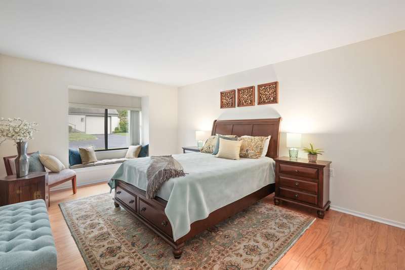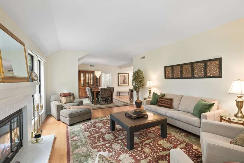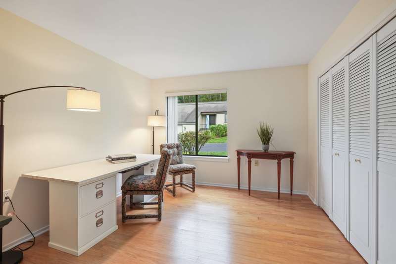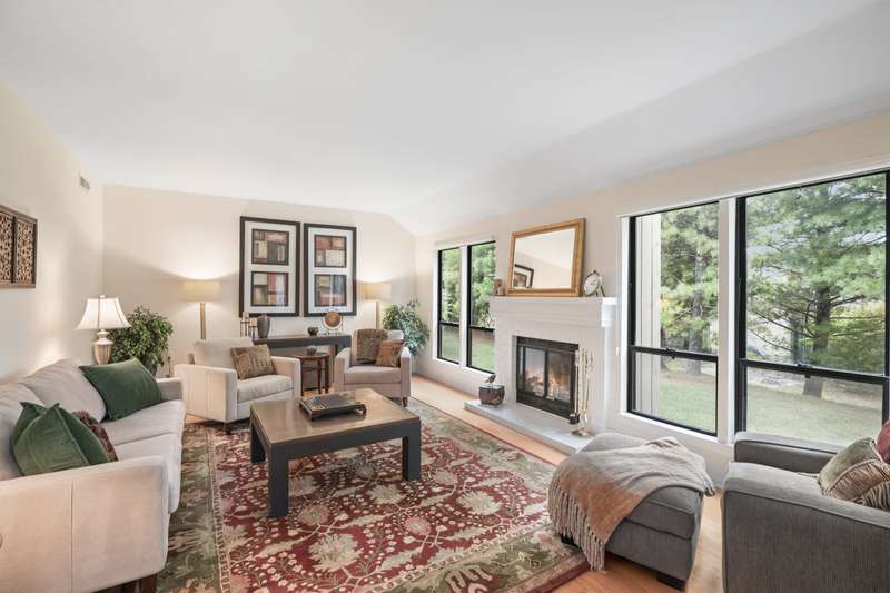 Beautifully maintained two-bedroom, two-bath, one-level Stratford end unit, freshly painted and featuring smooth ceilings throughoutno popcorn ceilings! The home offers engineered wood flooring for a seamless, modern look, with custom Silhouette blinds in the formal living room, highlighted by a cozy fireplace and adjoining dining area. The spacious primary bedroom includes a walk-in closet and an ensuite bath with a soaking tub and a walk-in shower. The second bedroom, currently used as an office, is complemented by a nearby hall bath with a walk-in shower. The lovely eat-in kitchen boasts white cabinetry, quartz countertops, track lighting, and sliders leading to a nice-sized deck, perfect for outdoor dining or relaxation. An attached one-car garage with storage shelving provides convenience, and the mini-freezer is included. Condo is being sold as is. Additional highlights include a newer hot water heater (2023). Enjoy the Heritage Hills lifestyle: 5 pools, tennis and pickleball courts, 24-hour security with EMS, Activity Center and Fitness Center, free shuttle to train and shops, and much more! Currently, no rental restrictions, but an application must be completed and reviewed prior to the start of the lease.Taxes are $5,959.52, without Basic STAR exemption of $1,447.22. HOA fees total $790.89, which include Condo 17 fee ($586.88) and Society fee ($204.01). Monthly sewer fee is $48.61, and water fee averages $40$50, based on usage. Buyers to pay $1500 roof replacement capital contribution fee at closing to Condo 17. Buyers to pay a one-time, non-refundable Capital Contribution fee of $1500 to Society at closing. No assessments per management.