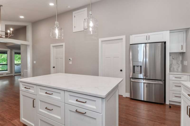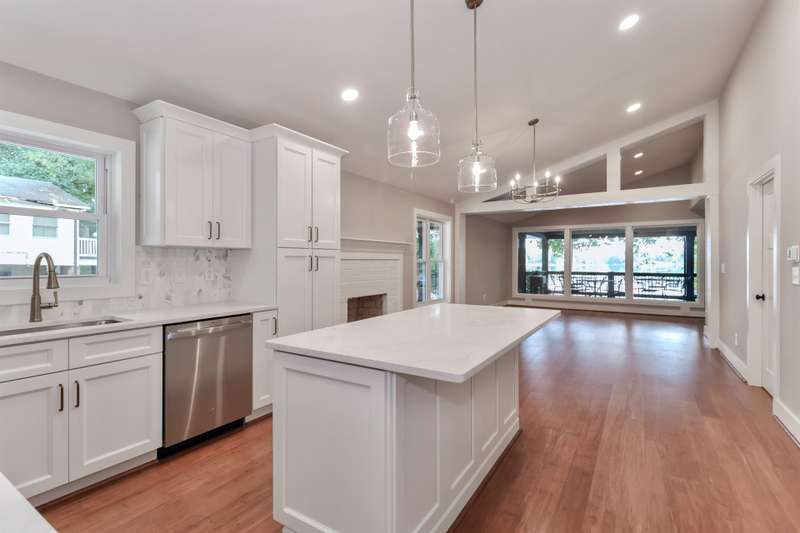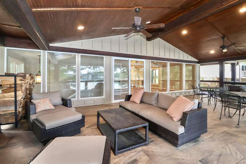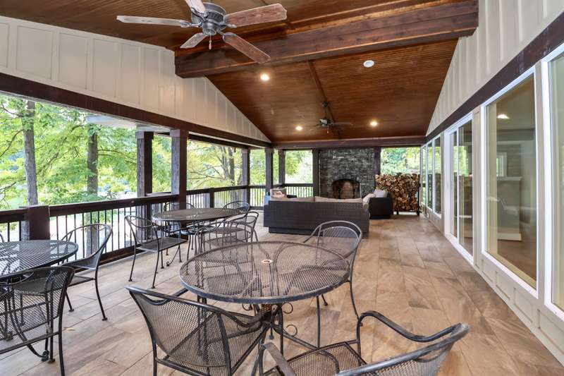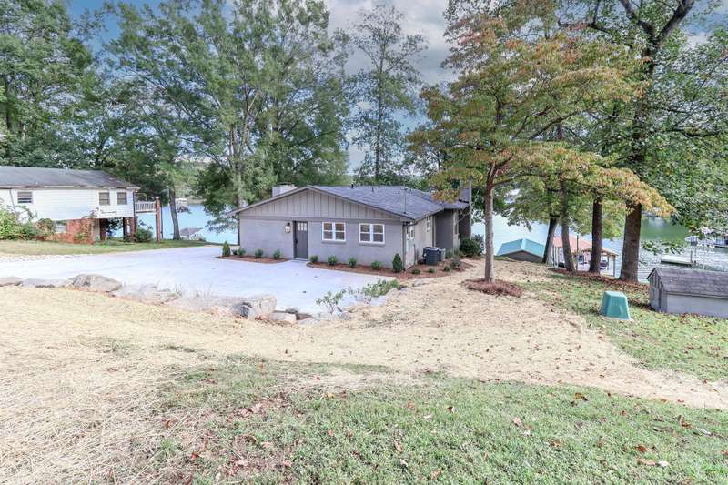 This 1964 lake house has been completely transformed and now looks like 2025 new construction. Every surface has been updated, and you will not be disappointed. Gutted to the studs with new plumbing and electrical throughout, this home features a fabulous new kitchen with modern appliances, a living room with fireplace, and an amazing 675 square foot covered deck with a fireplace and million-dollar lake views. The main level offers two bedrooms and one full bath, along with a half bath. The walkout basement includes a family room with working fireplace, sink, and refrigerator, plus two additional rooms that can serve as a bunk room and flex space, along with a full bath. The septic system was installed in 2015 and is rated for two bedrooms, but the home provides plenty of space to spread out with family and guests. Additional updates include an electric water heater (2025), furnace and central air (2015), roof (2015), and two thermostats for upstairs and downstairs. The dock has new electrical and a fan, and the garage?with a new door?offers lake views and works well for storage or a workshop, but is not suitable for vehicles or boats. Exterior updates include a new seawall, new driveway and parking areas, fresh landscaping, and new steps leading to the dock. Mountain Creek Park is located within one mile of the property.