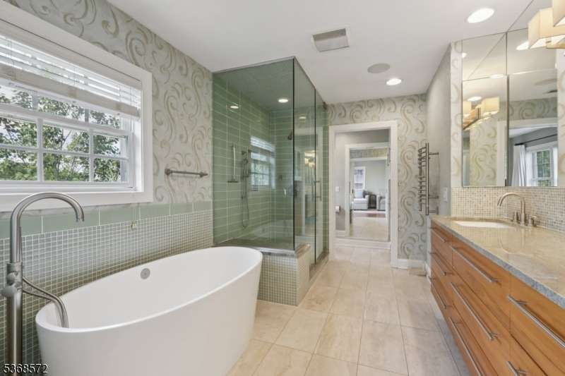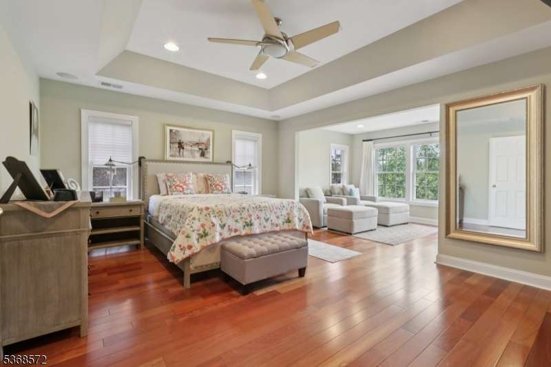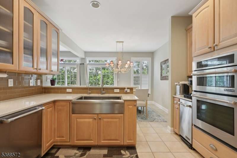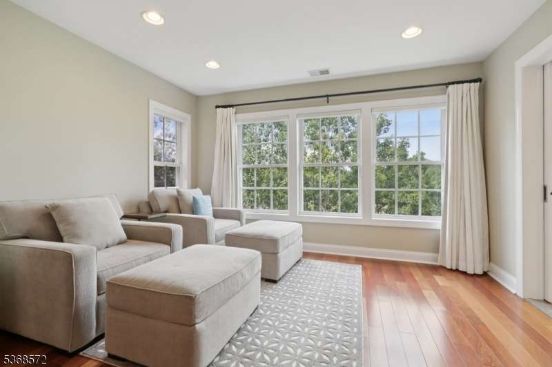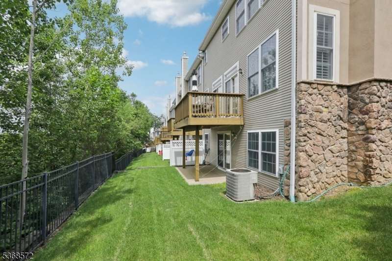 Enjoy spectacular views in this stunning end unit townhome in the coveted Forges! This highly sought after Syracuse model is the largest in the complex and offers 3 levels of spacious, care free living. The 1st floor checks all the boxes w/ its beautiful updated Chef's kitchen featuring high end appliances, breakfast bar and granite countertops, formal living room w/ gas fireplace and sliders to deck, large formal dining room, powder room, laundry room, and 1st flr office/bonus room. Upstairs continues to wow w/ its large open floor plan featuring a versatile loft space leading to the impressive primary suite w/ spacious sitting area and 2 customized walk in closets. The expanded, renovated primary bathroom features double sinks, custom cabinetry and tile as well as a gorgeous soaking tub. 2 additional light and bright bedrooms and additional full bathroom complete the 2nd floor. The large finished walk out basement w/ full bathroom provides additional flex space for storage/play. Convenient 2 car garage enters into the main level mud room/laundry room. Additional bonus features include gas line connection for grill, upgraded brazilian wood floors, 2024 association roof, 2 year old hot water heater and premium location ensuring tranquility and privacy. This top tier community boasts resort style exclusive amenities with its club house, fitness center, tennis courts and swimming pool. Enjoy top Denville schools and close proximity to shopping, Morris Plains train station and highways.