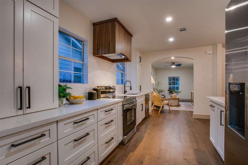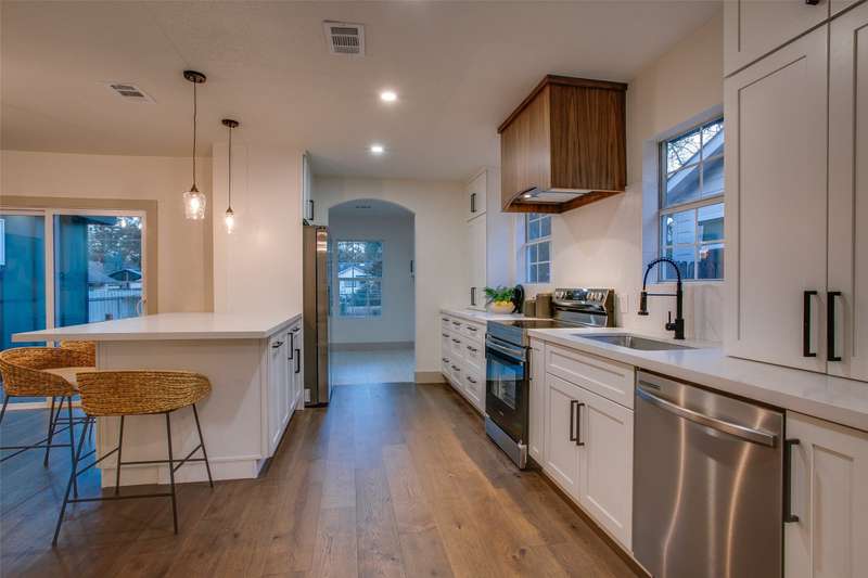 Step inside this beautifully renovated 3-bedroom, 2-bathroom home where modern updates meet timeless comfort. Every detail has been thoughtfully refreshed, from the brand-new flooring and fresh paint throughout, to the stylish light fixtures and finishes that give the space a warm, contemporary feel. The living room flows seamlessly into a stunning kitchen featuring new cabinetry, sleek countertops, and stainless steel appliances. The bedrooms offer plenty of natural light and closet space, while the private primary suite includes its own beautifully updated bathroom with elegant tile work, modern vanities and spa-like touches. Other notable highlights include a large bonus room that spans the entire second floor and a utility room off the back with washer and dryer hookups and abundant storage. With all major updates already complete, this move-in-ready home gives you peace of mind and style in every corner. Live in the heart of one of Oak Cliff's most treasured neighborhoods. Conveniently located mere minutes to local restaurants, coffee shops, Elmwood's own neighborhood garden, and all that Tyler Station has to offer.