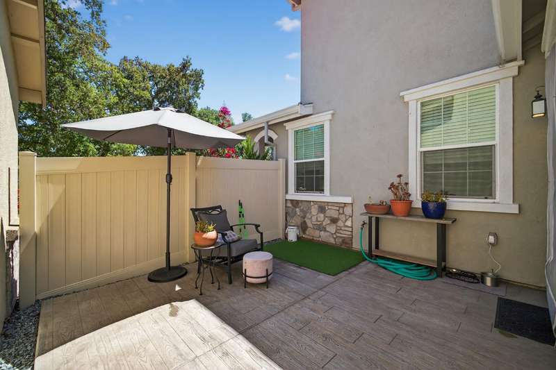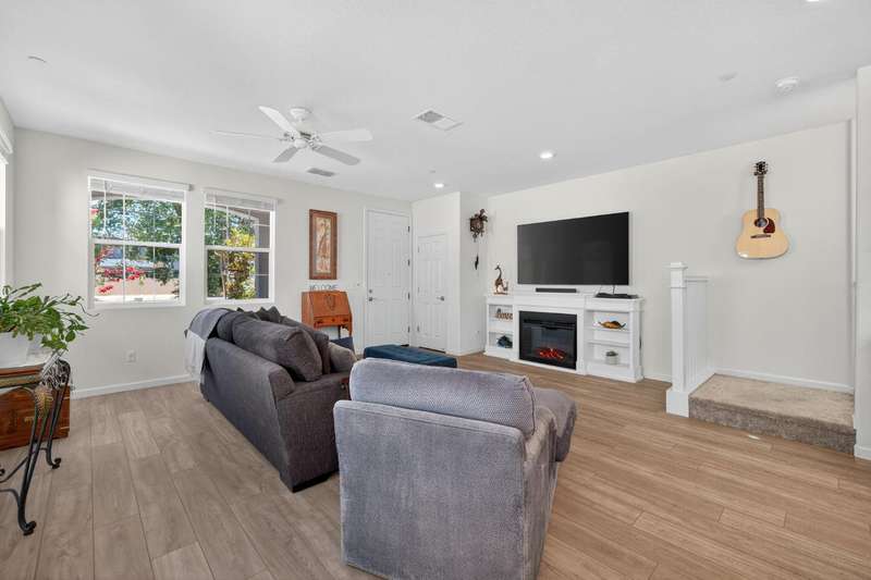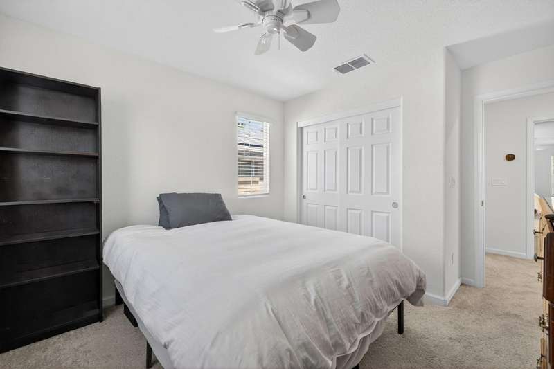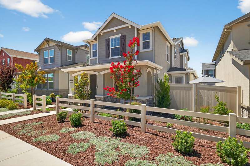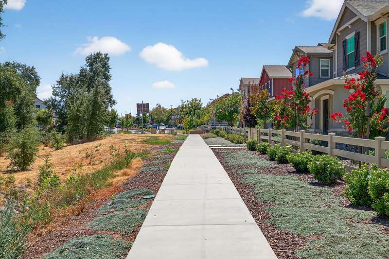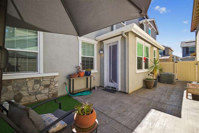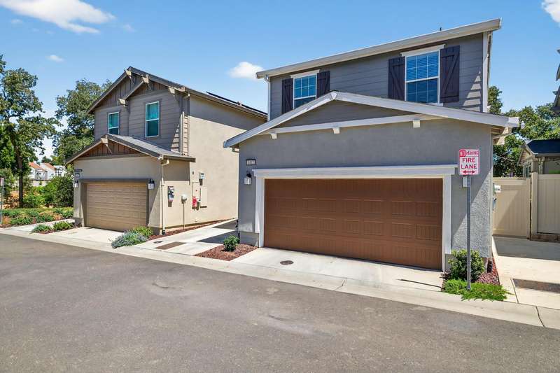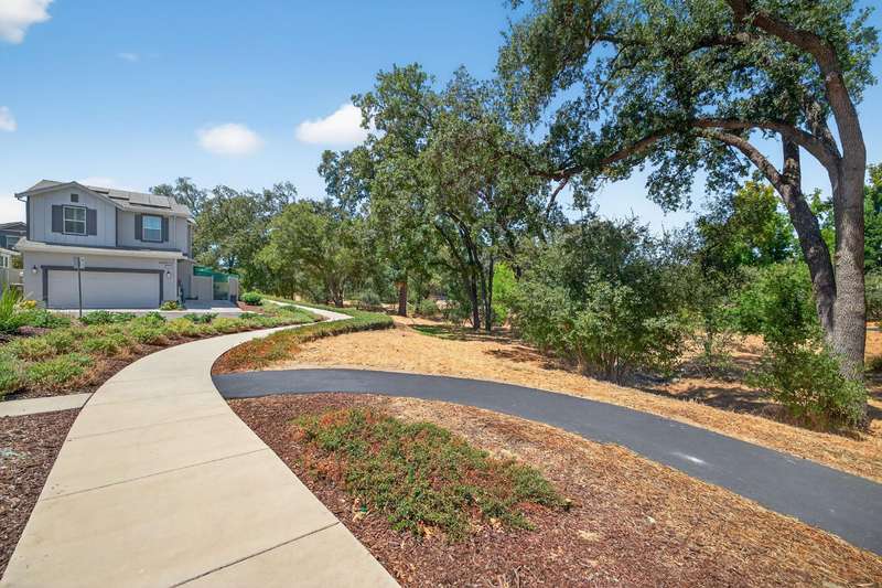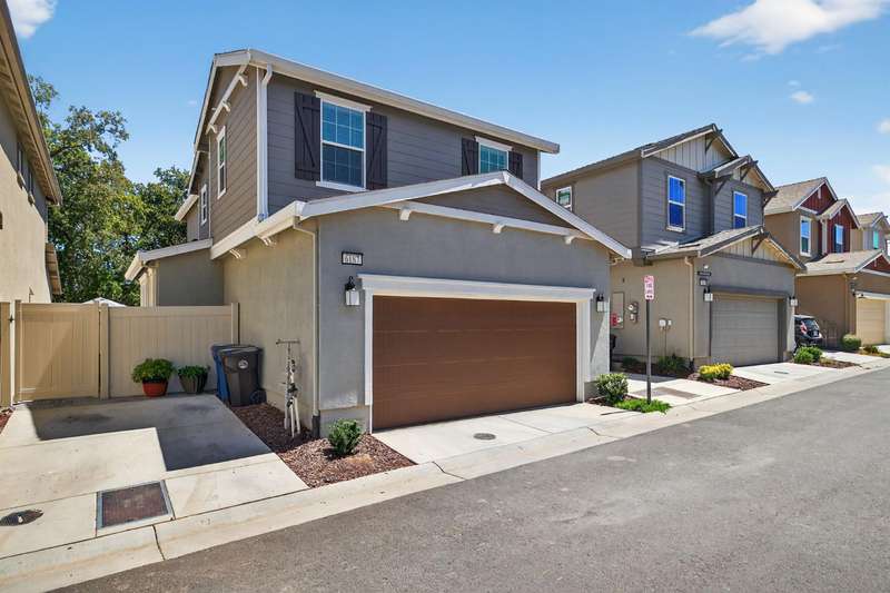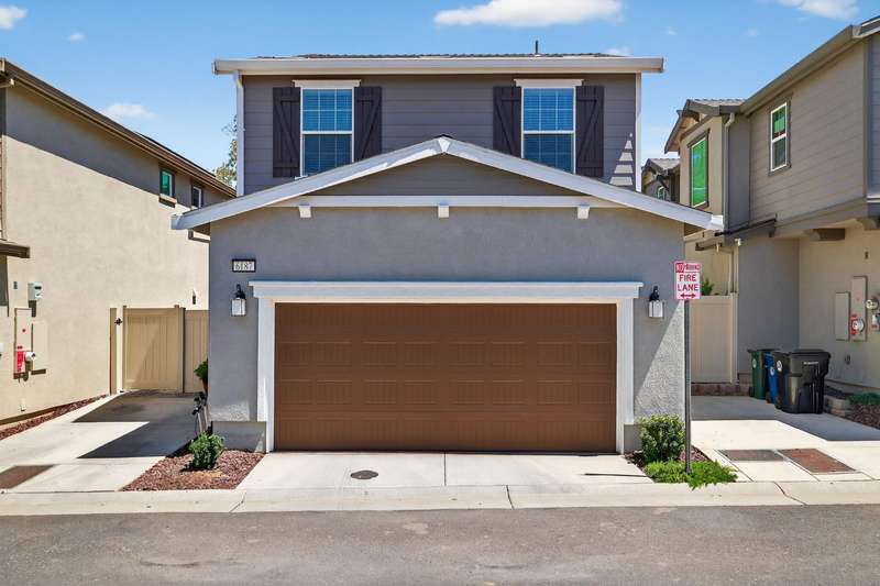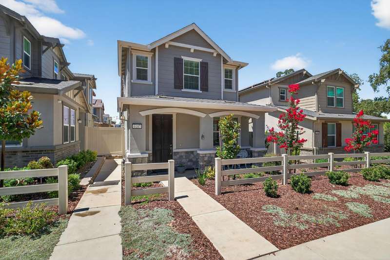 This 2 year old home is located steps from a peaceful greenbelt and lovely walking trail. Located in a quiet, well-kept neighborhood, this 3-bedroom, 2.5-bathroom home has a wonderful layout and is move-in ready. Inside, the layout is open and functional, with vaulted ceilings, large windows, and great natural light. The kitchen features an island, plenty of storage with pantry, and newer appliances. All bedrooms are upstairs, including a spacious primary suite with walk-in closet and double sinks in the ensuite bathroom. You'll also find upstairs laundry hookups, central heating and air, whole house fan, and a 2-car garage with automatic opener. The private backyard is perfect for relaxing or hosting friends. Leased solar panels help keep utility bills low. Enjoy quiet streets, community walking paths & common areas, and easy access to local shops, schools, and parks. A rare opportunity to own a home with direct access to nature.