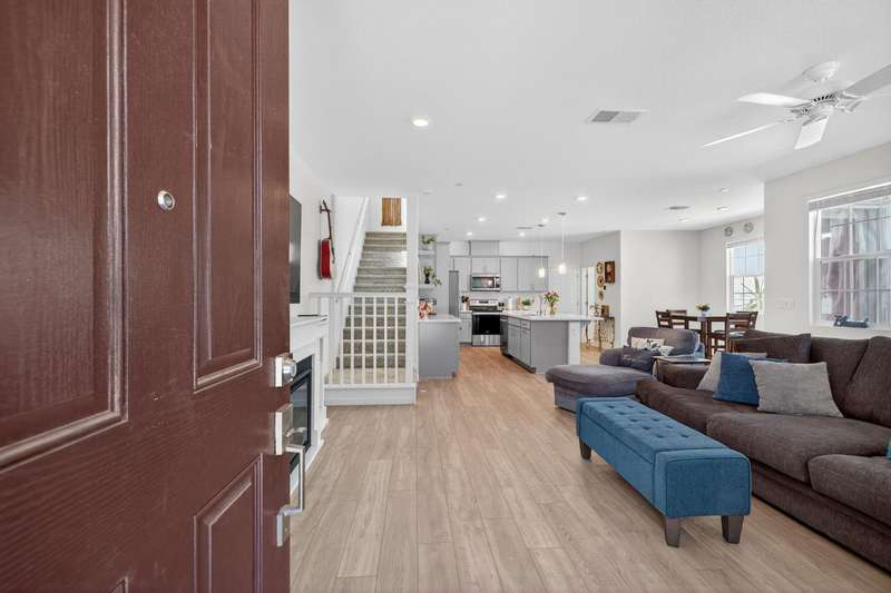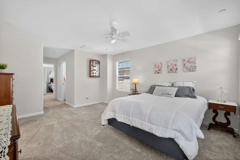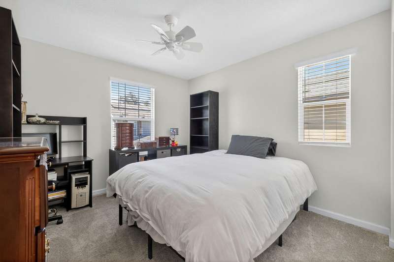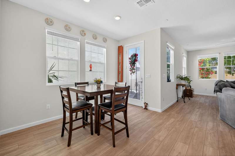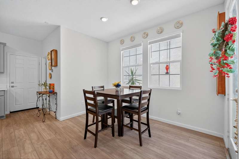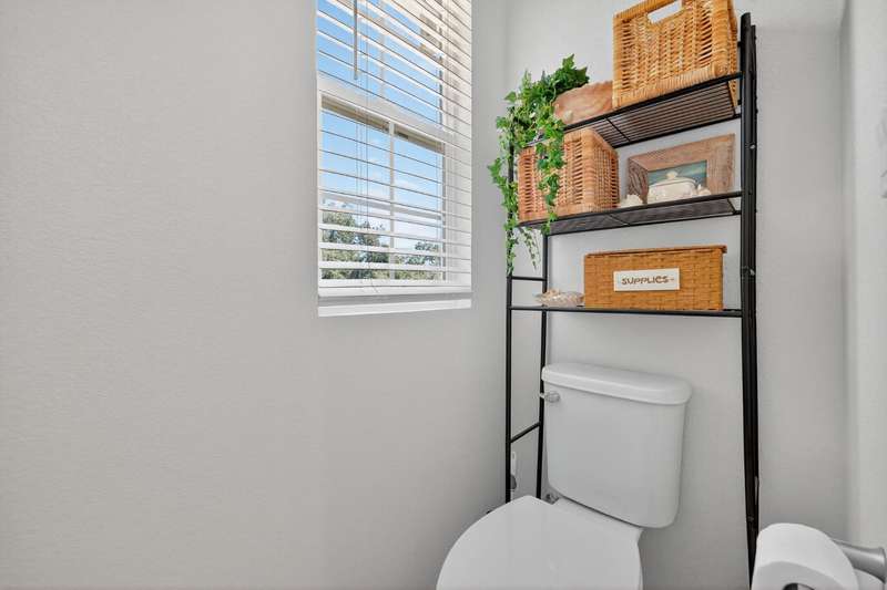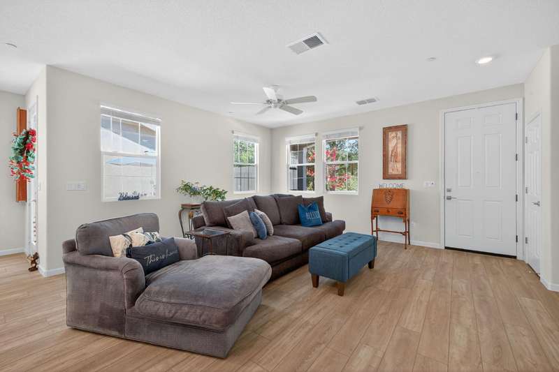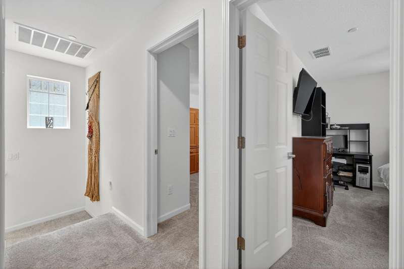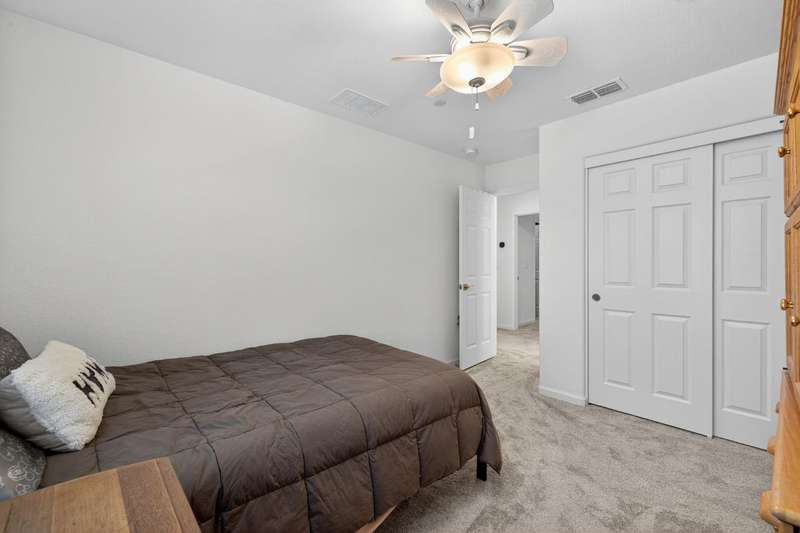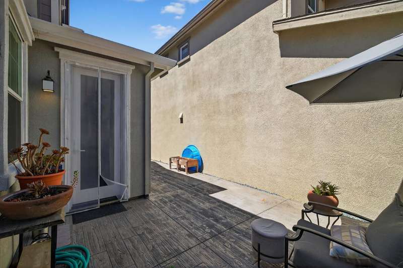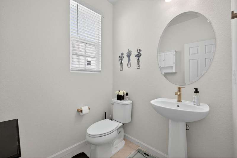 This 2 year old home is located steps from a peaceful greenbelt and lovely walking trail. Located in a quiet, well-kept neighborhood, this 3-bedroom, 2.5-bathroom home has a wonderful layout and is move-in ready. Inside, the layout is open and functional, with vaulted ceilings, large windows, and great natural light. The kitchen features an island, plenty of storage with pantry, and newer appliances. All bedrooms are upstairs, including a spacious primary suite with walk-in closet and double sinks in the ensuite bathroom. You'll also find upstairs laundry hookups, central heating and air, whole house fan, and a 2-car garage with automatic opener. The private backyard is perfect for relaxing or hosting friends. Leased solar panels help keep utility bills low. Enjoy quiet streets, community walking paths & common areas, and easy access to local shops, schools, and parks. A rare opportunity to own a home with direct access to nature.