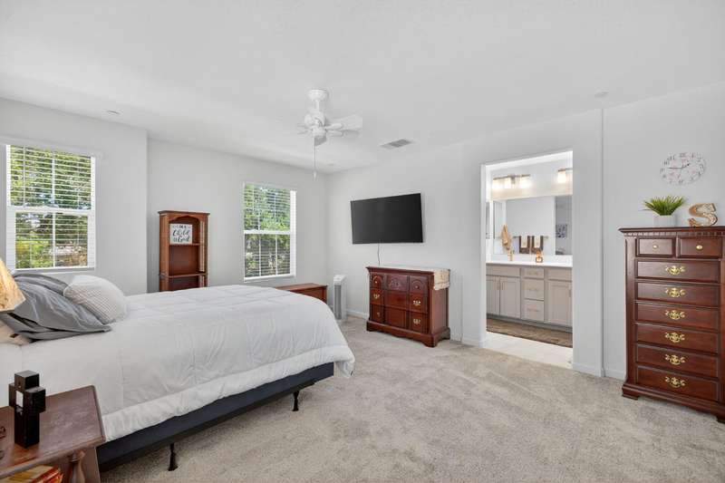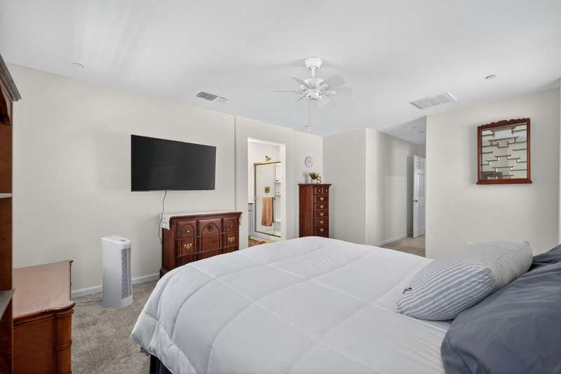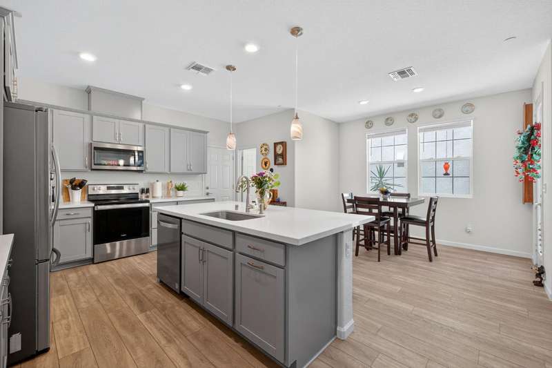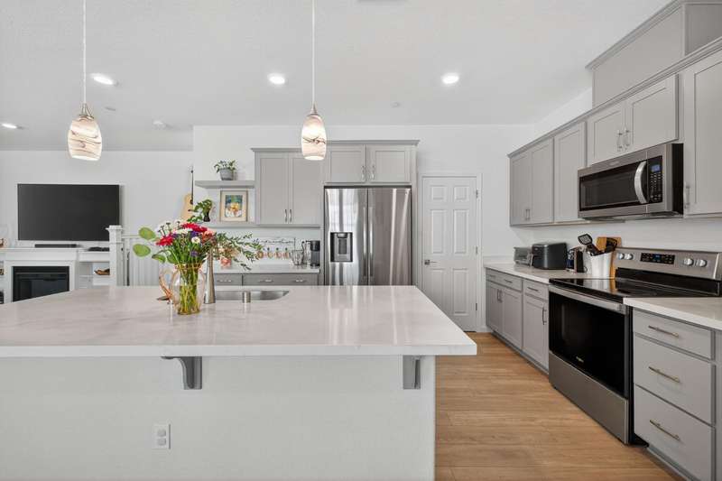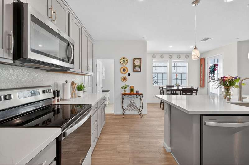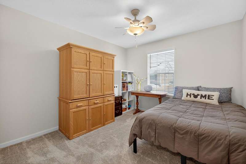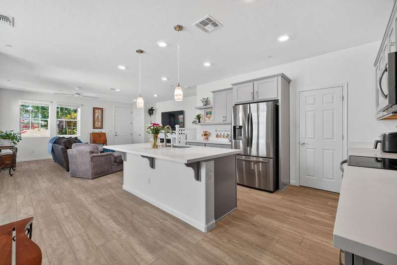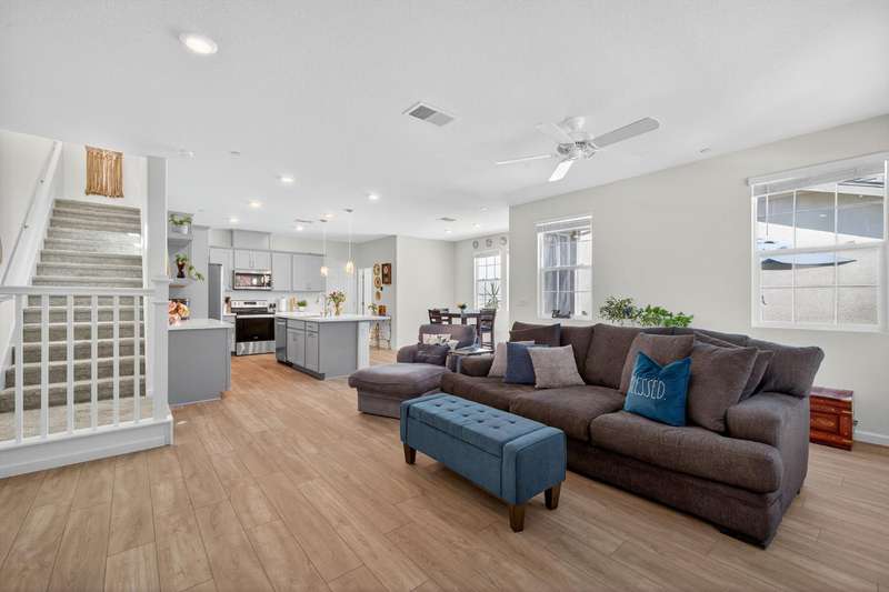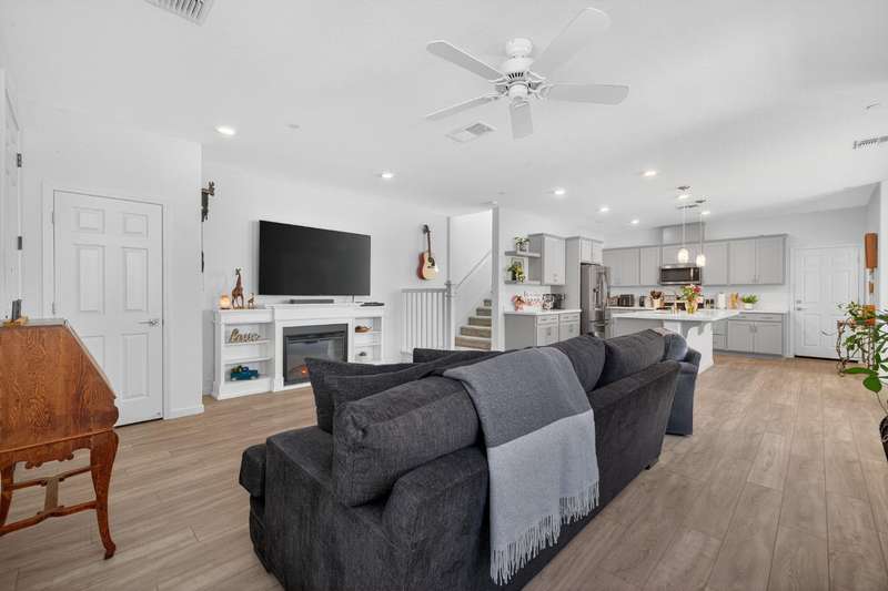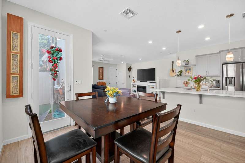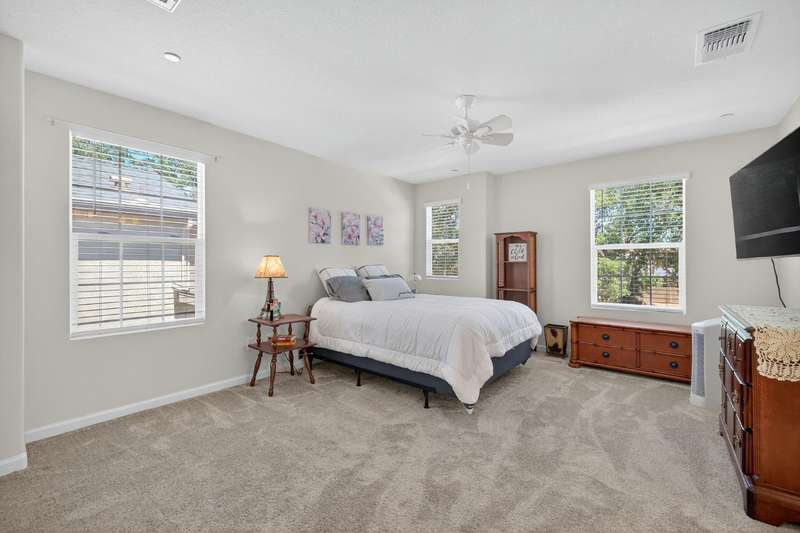 This 2 year old home is located steps from a peaceful greenbelt and lovely walking trail. Located in a quiet, well-kept neighborhood, this 3-bedroom, 2.5-bathroom home has a wonderful layout and is move-in ready. Inside, the layout is open and functional, with vaulted ceilings, large windows, and great natural light. The kitchen features an island, plenty of storage with pantry, and newer appliances. All bedrooms are upstairs, including a spacious primary suite with walk-in closet and double sinks in the ensuite bathroom. You'll also find upstairs laundry hookups, central heating and air, whole house fan, and a 2-car garage with automatic opener. The private backyard is perfect for relaxing or hosting friends. Leased solar panels help keep utility bills low. Enjoy quiet streets, community walking paths & common areas, and easy access to local shops, schools, and parks. A rare opportunity to own a home with direct access to nature.