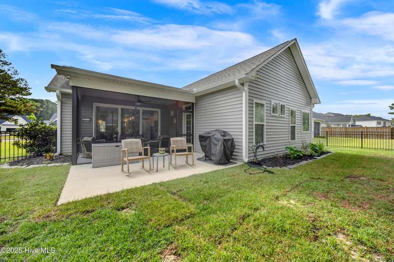 Welcome to your dream home! This exquisite 3-bedroom, 2-bathroom residence, built in 2022, seamlessly blends contemporary design with comfort in a serene, centrally located neighborhood.Step inside to discover a spacious open-concept living area with abundant natural light. The state-of-the-art kitchen is a culinary delight, featuring granite countertops, a stylish tile backsplash, and stainless steel appliances that make cooking an absolute pleasure.Each bathroom showcases elegant tile flooring and showers. The primary suite offers a luxurious bathroom with an oversized shower and a separate soaking tub, perfect for unwinding after a long day.Enjoy the outdoors with a screened-in back porch that leads to a beautifully fenced backyard. Recently installed new sod ensures a lush, green expanse ideal for relaxation or play. With ample green space, it's an oasis for garden enthusiasts and pet owners.Nestled in a quiet, picturesque neighborhood, this home is conveniently located near scenic walking trails, providing the perfect backdrop for leisurely strolls and outdoor enjoyment.Don't miss the opportunity to make this exceptional home yours!