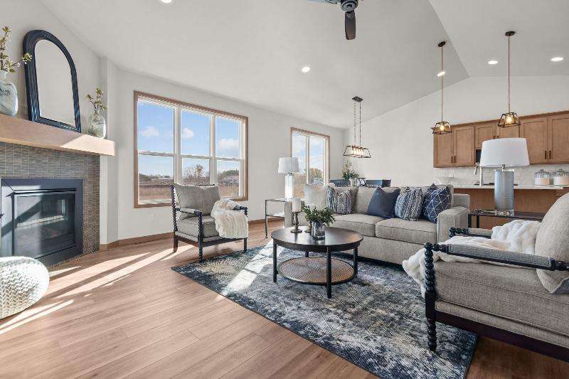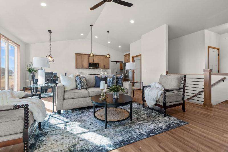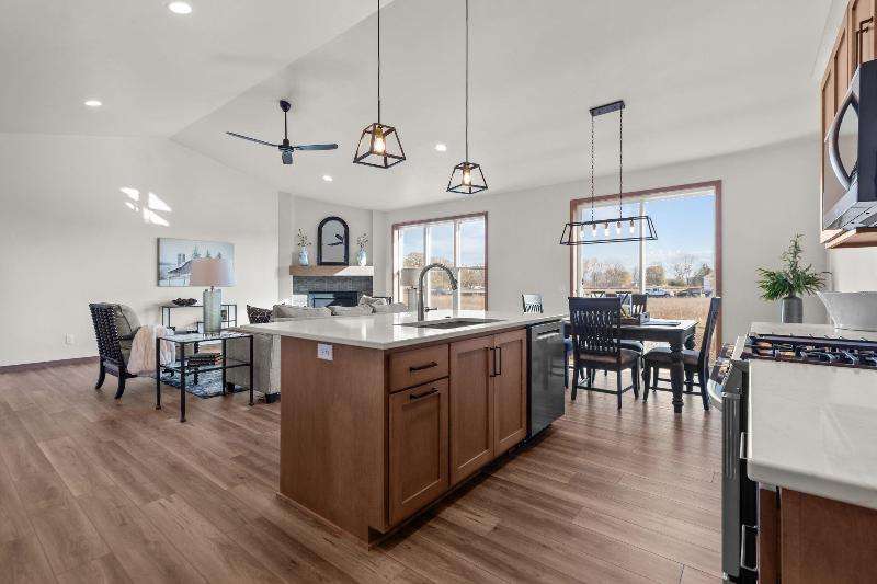 Welcome to this beautiful NEWLY COMPLETED split-bedroom ranch-style home by Midwest Design Homes. This property features an inviting open-concept kitchen equipped with a large island and a 9x6 walk-in pantry, complete with a countertop for your coffee maker and air fryers. The Living room includes a gas fireplace with a stunning stone from floor to Mantle. The primary suite boasts dual sinks, a walk-in closet, and a lovely tile shower with a shower pan. Additional amenities include a driveway leading to the road, sidewalks, a microwave, a dishwasher, and a garbage disposal. This home also comes with a one-year builder warranty and has undergone an energy inspection for efficiency. MDH YEAR END SPECIAL WITH ACCEPTED OFFER BY 12/31 ONE FULL DAY PAID TWO MEN AND A TRUCK OR APPLIANCES INCLUDED
