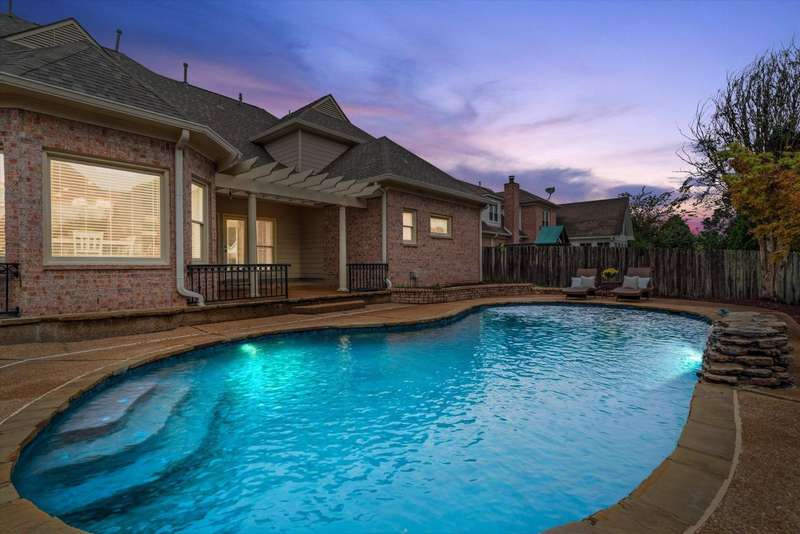 Introducing this glorious Collierville home nestled in the highly desired neighborhood of Wellington Farms. This absolutely splendid home features 5 bedrooms, 3.5 bath w/ a bonus room which can be 6th bd w/ closet & a partially finished large attic space for extra storage. BRAND NEW ROOF, EF5 tornado protection STORM SHELTER, NEWLY INSTALLED TANKLESS WATER HEATERS, NEWLY INSTALLED A/C UNIT, NEWLY RESURFACED GUNITE POOL w/cascading waterfall! Bring indoor to Outdoor living w/ built-in gas grill overlooking a spectacular Gunite pool for perfect gatherings. Open floorplan concept w/ COMPLETELY UPGRADED CUSTOM kitchen w/ wraparound bar, newly updated wide plank hardwood floors. New garage door, motor, belt drive, fresh new paint in kitchen & breakfast lounge. Immaculately maintained & built w/quality. Enjoy relaxing evening nights watching sunsets by the poolside. Welcome to your oasis! *Disclaimer - formal dining & living room virtually staged. Open House 11/2 2-4