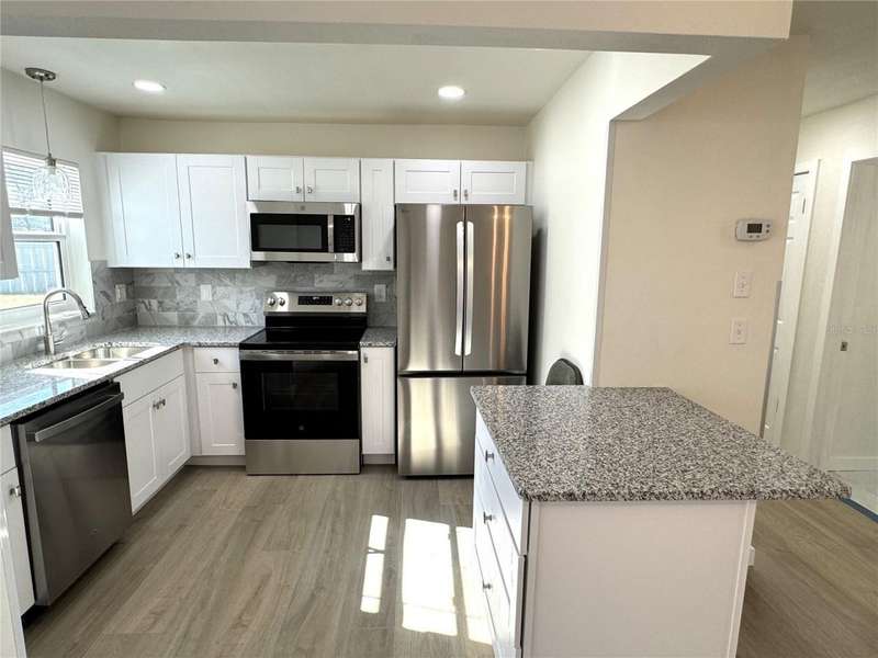 One of West Bradenton's best kept secrets. Darling association with all ground level condos, so no stairs with groceries, luggage or golf clubs! And best of all no one above you. This condo has had a complete renovation with entire new kitchen including appliances, both bathrooms, floors, doors and jambs, baseboards, most windows replaced with impact, all light and plumbing fixtures, paint. The kitchen has white cottage style cabinets, stainless appliances, solid surface counters with complimenting backsplash, undermount sink, French door fridge, smoothtop range, microwave range hood, and separate island/bar with spacious pan drawers. The bathrooms have new fixtures, elongated bowls, tile bath and shower walls, white cottage vanities and glass subway accents. There is a laundry room accessed from the inside with a full size washer and dryer and storage shelf. The back yard is accessed via sliding glass doors to a window enclosed lanai and rear door that opens to a beautiful royal poinciana tree. There is parking right at the front entry of this single level corner villa with extra windows to enjoy our Florida sunshine. This home is about a half block to the clubhouse and pool where you will find many activities if you choose to enjoy your fellow Cortez Villas neighbors for socializing. 5 to 20 minutes from everything Manatee County has to offer including our wonderful white sandy beaches, golfing, boating, groceries, retail shopping, medical facilities, houses of worship, live and on screen theaters, museums, tons of sport venues, shop till you drop at UTC Mall and famous St Armands Circle, Downtown Bradenton's River Walk, and last but not least, Sarasota Bradenton International Airport. Even tiny little Fido is welcome.