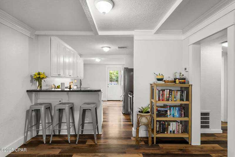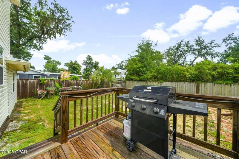 SELLER IS OFFERING $5,000 IN CLOSING COSTS!!! Located in the desirable Cove neighborhood, this 3-bedroom, 2-bath home offers a blend of classic character and thoughtful updates. The open kitchen connects seamlessly to the living and dining areas and features stainless steel appliances, soft-close cabinets, a breakfast bar, and a large coffee bar with a built-in desk nook. A sunken den off the dining area provides flexible space for a home office or second living room.The private upstairs master suite includes a walk-in closet, en suite bathroom with tub/shower combo, and peek-a-boo views of the Bayou. Two guest bedrooms are on the main floor, along with a full bath featuring updated fixtures. Interior highlights include updated flooring, paint, and ceiling fans throughout.Step outside to a large backyard with beautiful landscaping potential, an established deck, and a privacy fence with alley access and a pergola-topped entry gate. This Cove gem is minutes from downtown, schools, parks, and the water--and best of all, there's no HOA.*Buyer to verify all measurements and information
