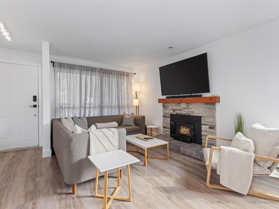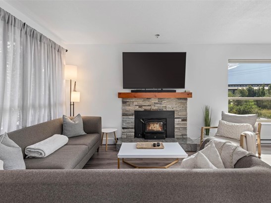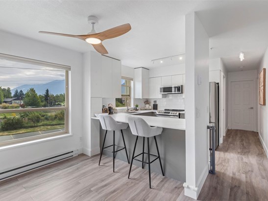 Welcome to this beautifully updated corner unit – ideally located in the complex to allow all-day natural light. Wake up to pretty sunrises, enjoy the warmth of alpenglow on the mountains in the evening, and relax on the deck with afternoon shade. This spacious 2-bedroom, 2-bathroom condo has been extensively updated with a fully renovated kitchen featuring quartz countertops, new appliances, added cabinets and modern lighting. It has fresh flooring and new baseboards throughout, while the bathrooms have been partially renovated, including imported Italian tile in the primary ensuite. An airtight fireplace assists in heating in the winter, keeping the electricity bills lower, and the generous laundry and pantry provide excellent functionality. With mountain views and thoughtful updates throughout, this home blends comfort, style, and convenience. Ideally located close to shopping, the recreation center, and the bike park, this is a move-in-ready homeyou’ll love.