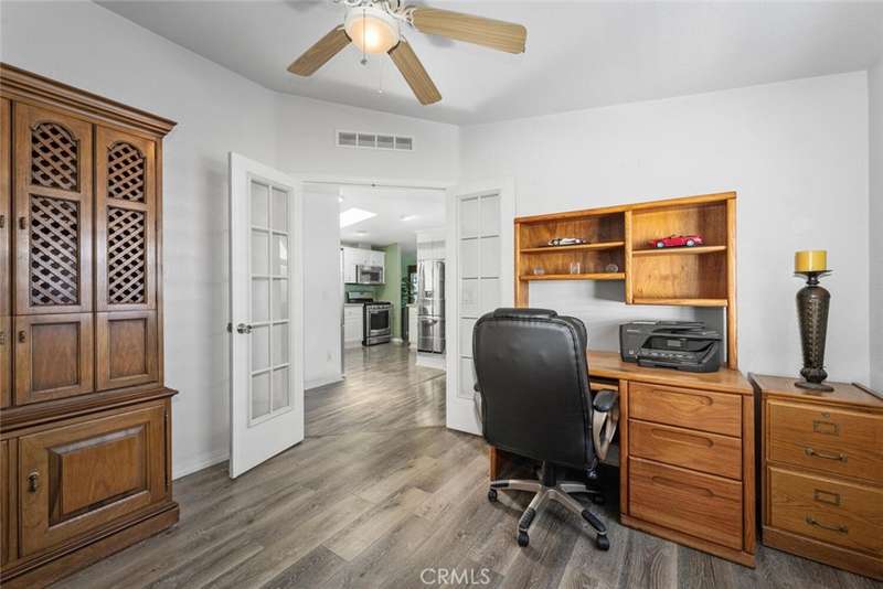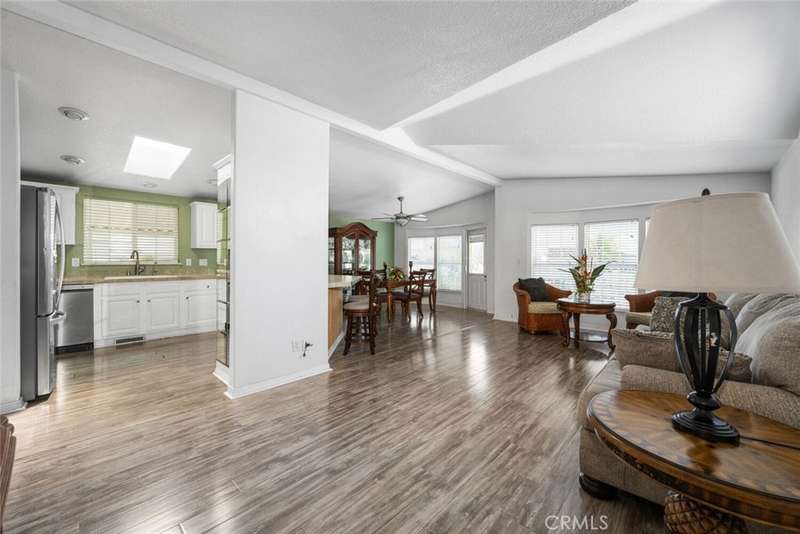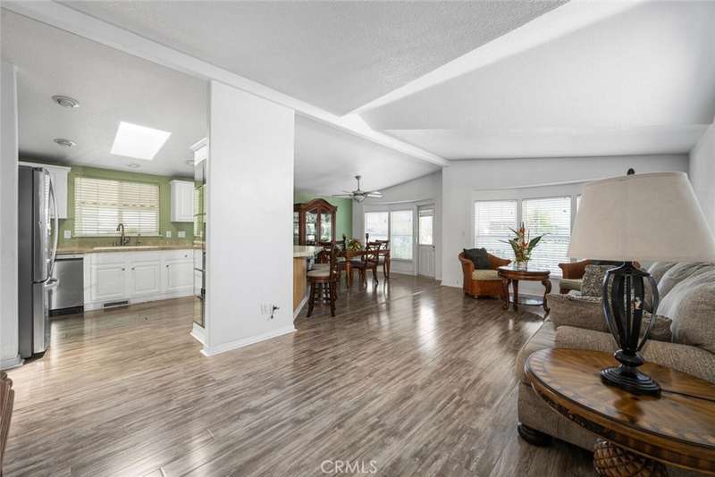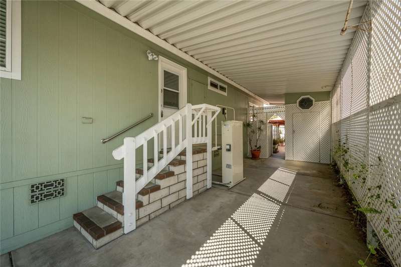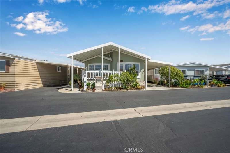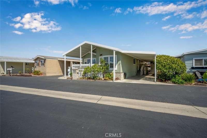 Location Location Location!!! This 55+ Community home is sitting pretty right in the middle of highly desirable Rancho del Rey. Situated right across from the Main Clubhouse making it VERY convenient for enjoying Park amenities such as heated swimming pool and spa, practice putting green right across the street, sauna, guest parking and much more. This 2004 Skyline built home offers a bright and open floorplan with a spacious kitchen that opens to the living room. Other interior features include dual pane windows that provide an amazing amount of natural light and relaxing views. This home is equipped with forced air heating and AC / cooling, tasteful laminate flooring in the kitchen, living room, office and hallway areas, 2 full bathrooms with the master bath offering dual sinks, cabinet storage space for extra towels and linens in addition to a separate soaking tub and shower with safety grab bars in the shower. The spacious master bedroom also offers a large walk-in closet. Rounding out the interior includes all stainless kitchen appliances which include refrigerator, dishwasher, built-in microwave, freestanding gas range and convection oven and last but not least front-loading washer and dryer combo. Exterior notables include a very relaxing and private front porch that overlooks the main clubhouse grounds, attached covered tandem carport that offers an electric wheelchair lift, guest parking right across the street, hard to find backyard area with covered canopy and storage shed. Rancho del Rey Mobile Estates is privately owned and is convenient to shopping, restaurants, freeways, hospitals, sandy beaches, paddle board or kayak in adjacent Huntington Harbour, wetland hiking trails, Main Street Huntington Beach and so much more. Arguably the BEST Value Park HB has to offer hands down.