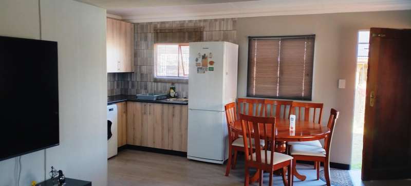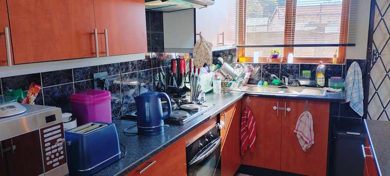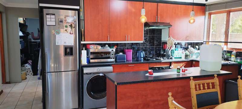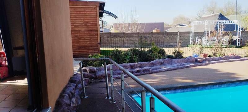 An exceptional property now available for sale, perfect for extended families. The main house features: * Four bedrooms with built-in cupboards * Three bathrooms * A lounge with wall-to-wall built-in showcase units * A dining room * A TV/entertainment room for the whole family, opening onto a sparkling pool and a well-kept garden * A modern kitchen with ample cupboard space * Gas geysers Additionally, the property includes two flatlets: Flatlet 1 offers: * Three bedrooms with built-in cupboards * Two bathrooms * An open-plan lounge and kitchen Flatlet 2 provides: * A lounge * A kitchen * One spacious bedroom * One bathroom This home also comes with fantastic extras, including: * An alarm system linked to armed response, electric fence, and beams for enhanced security * Day and night solar lights * A comprehensive solar installation (21 Canadian solar panels at 650 watts each, 3 x 5kW inverters, and 6 x 5.1 kva batteries) * An automated double garage with cupboard space * A koi pond, with some of the koi fish included in the sale The property is centrally situated with easy access to all amenities. Don't miss out on this incredible opportunity. Please contact me today to arrange a viewing appointment.