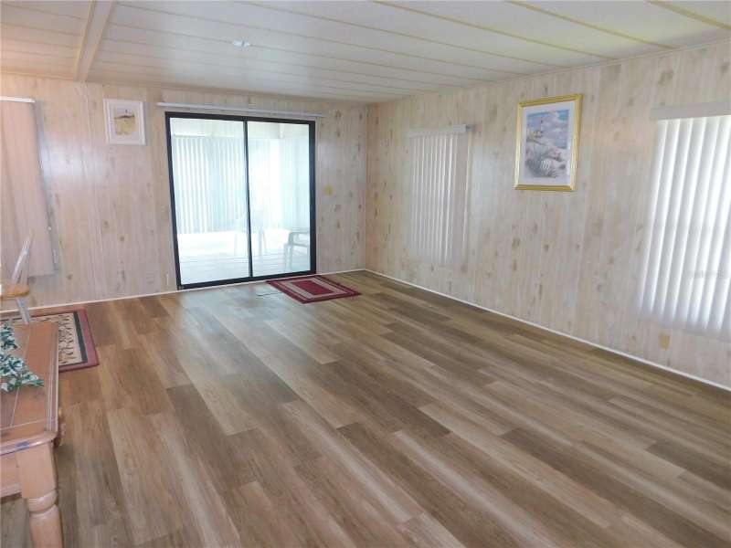 Charming 2 Bedroom, 2 Bath Home – No HOA or CDD! Welcome to this spacious and well-maintained 2 bedroom, 2 bath mobile home located in a non-age restricted community with no HOA or CDD fees! This inviting home features a large open great room with new flooring throughout, perfect for relaxing or entertaining. The dining room offers a beautiful bay window and built-in cabinetry with a mirror, adding both charm and functionality. The kitchen includes a refrigerator, range, and a cozy breakfast nook. Both bedrooms feature built-in closets, providing ample storage space. The home offers two full bathrooms—one with a convenient step-in shower, and the other with a tub/shower combo. Enjoy the Florida lifestyle in the 8’ x 24’ enclosed Florida room, a great spot to unwind and take in the neighborhood views. There’s also a workshop area with washer and dryer connections and a covered 1-car carport for your convenience. Residents have access to community amenities including a clubhouse and shuffleboard court.