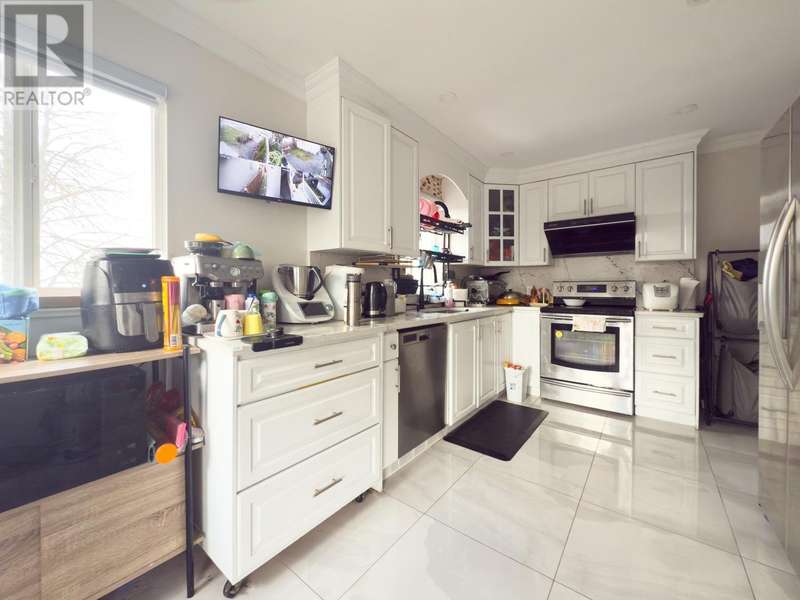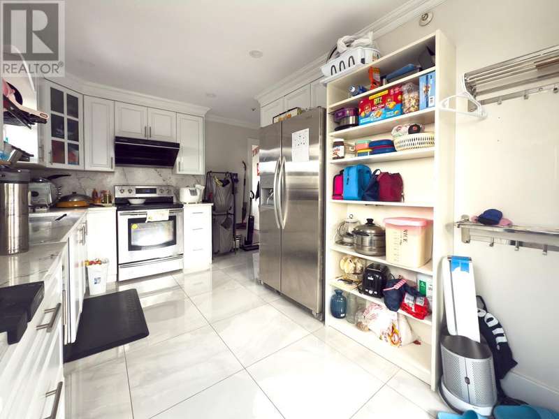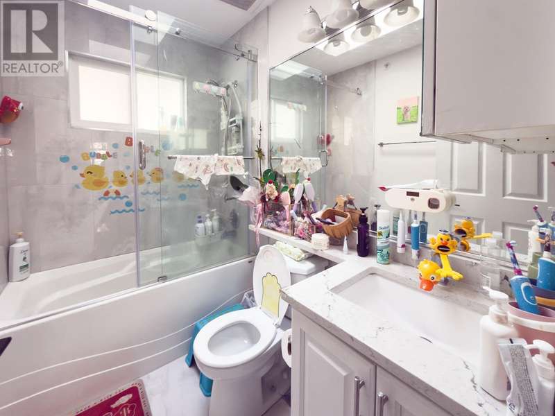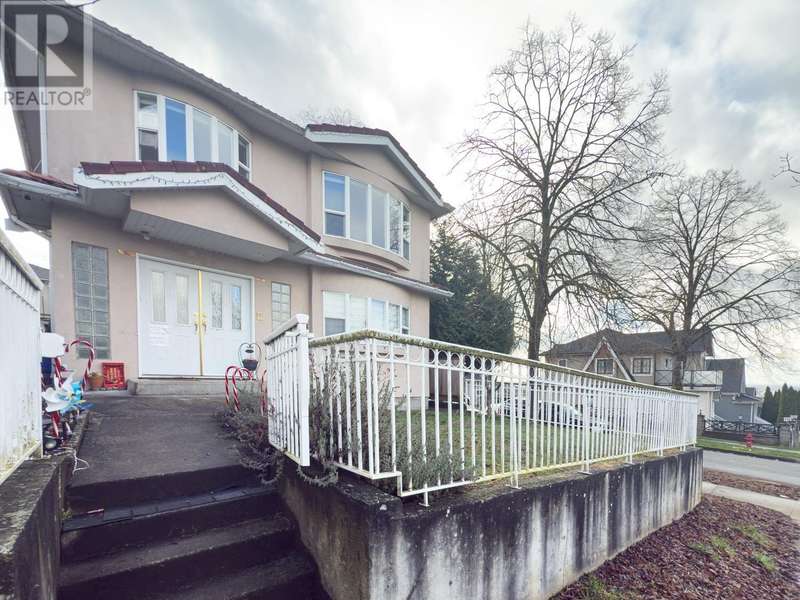 Two level South Vancouver house situated on a corner lot. Built in 1996. 5 bedroom, 3 bathroom home with contemporary renovations throughout. Upstairs features three bedrooms, 2 bathrooms, spacious living room with gas fireplace and dining area as well as updated kitchen with eating nook. Two bedroom, 1 bathroom suite downstairs with separate laundry, full height ceilings and separate entry. Suite can be connected to the main house from the foyer. 2 car detached garage. Convenient location. (id:58403)