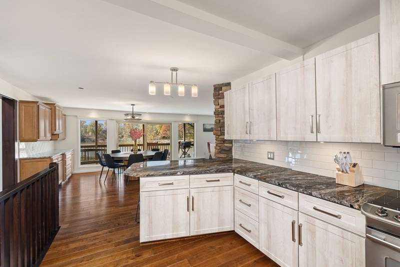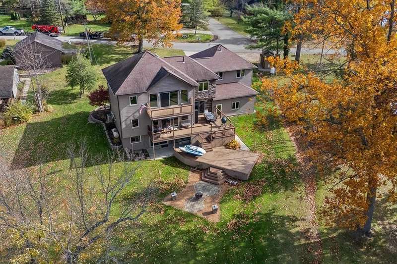 Stunning Lake House & all the amenities for All-Year-Round living! Enjoy gorgeous views of the Lake from the updated composite decks located on both levels of the home & your own private dock! The main level offers a modern eat-in kitchen, spacious living area w/ gas fireplace, dining room, bedroom & full bath. Enjoy easy access to the main level deck, large enough for all of your friends & family! The second level has a sprawling Primary Suite, full bath, walk-in shower & walk-in closet. Spacious family room that leads out onto a private deck to enjoy your morning coffee while overlooking the lake. Along w/ a 3rd bedroom & full bath w/ second floor laundry. The lower level includes more living space w/ a 4th bedroom, full bath & bonus laundry area for you guests to enjoy complete privacy!