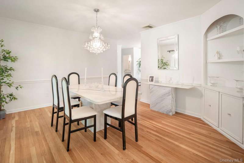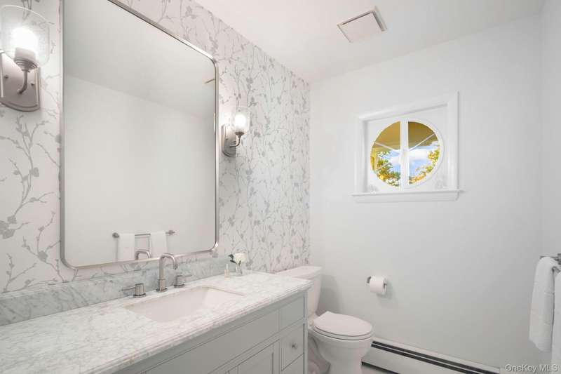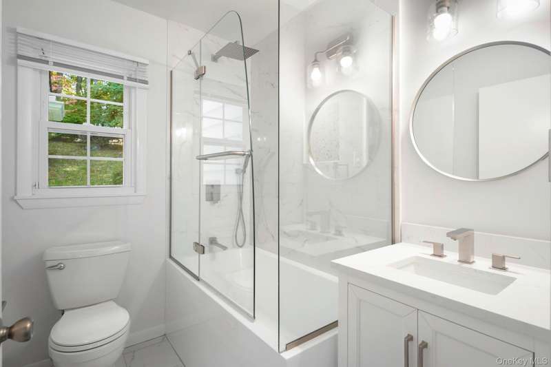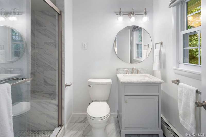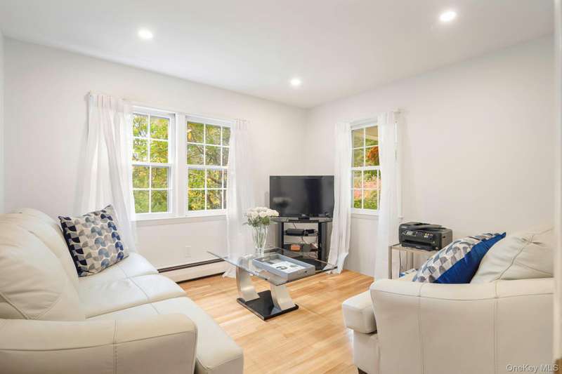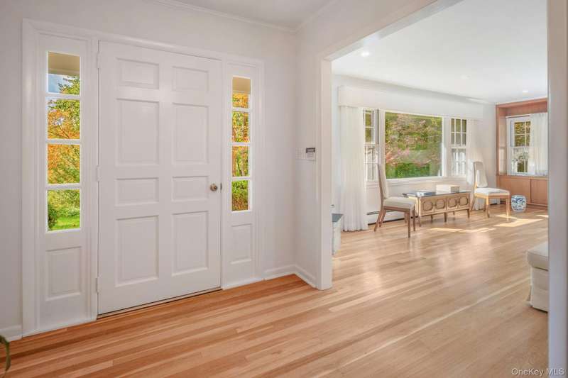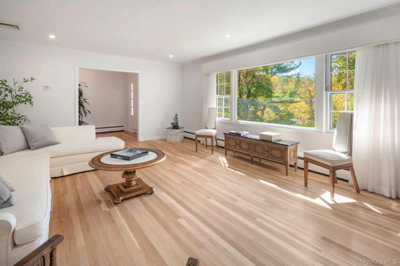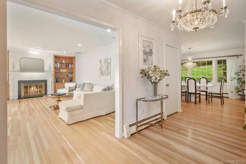 Welcome to this sparkling sun-filled ranch, this beautifully updated 4 bedroom/2.1 bath home offers an easy living floorplan, lovely landscaped property and easy access to top rated schools, shops and commuter train. Over 2000 sq ft, on an acre, offering privacy amidst a neighborhood feel. Newly renovated bathrooms, updated kitchen, freshly painted interior, and gleaming newly refinished white oak floors throughout beckon. The many windows allow natural light to flow into an impeccably maintained interior in move-in condition. Enjoy morning coffee on the slate patio overlooking the landscaped backyard. The updated white kitchen features quartzite counters, glass tile backsplash, a peninsula and opens onto an appealing breakfast room. The Formal Living Room features a cozy fireplace, crown molding and wall of windows. The Formal Dining Room is gracious in size and offers a built-in corner cupboard and wall of windows. The King size primary bedroom has a newly renovated en-suite full bat