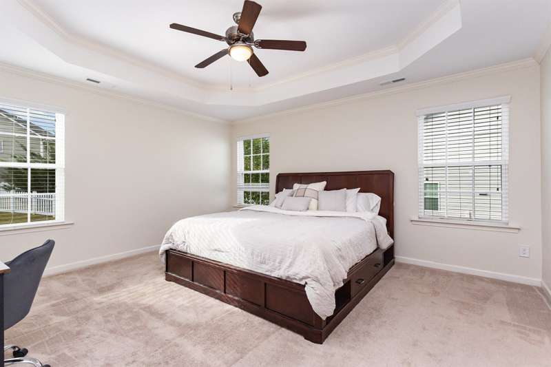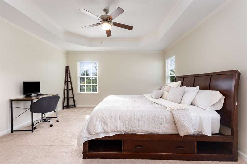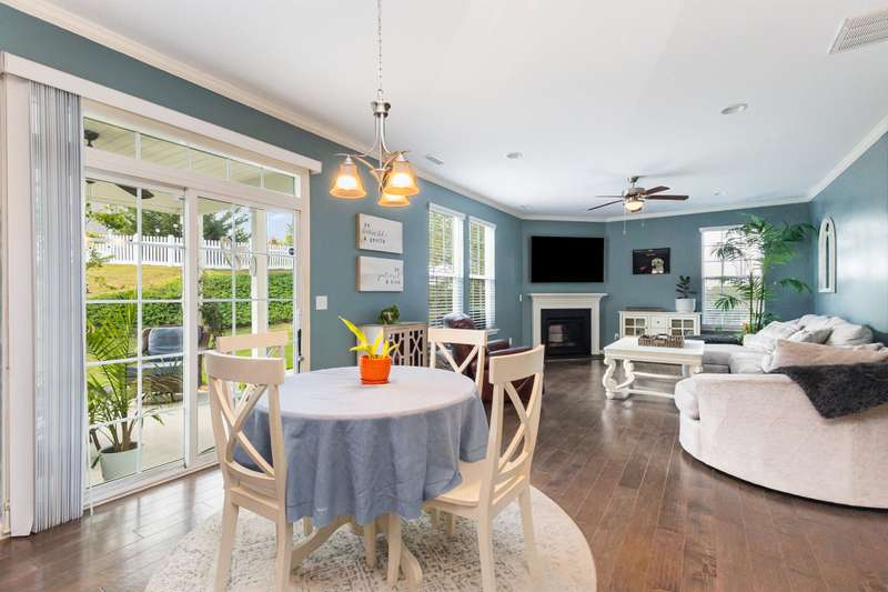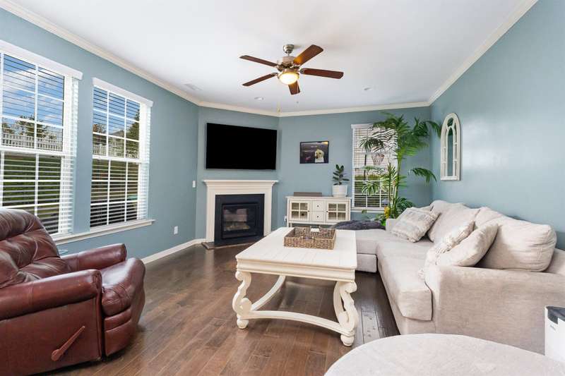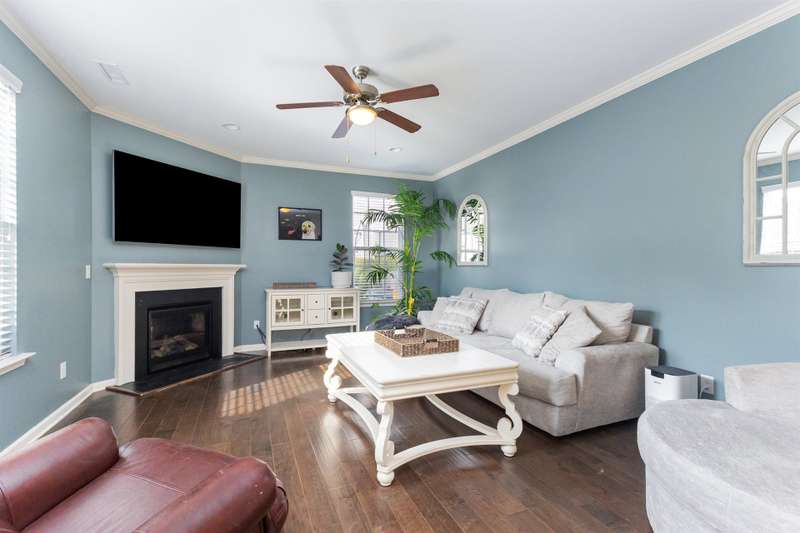 Move right in to this beautiful 4 bed, 2 ? bath home in the lovely Langston Ridge neighborhood! The freshly painted interior features an open floor plan and engineered hard woods throughout the first level. The large living area is cozy with a corner gas fireplace and opens to the sunny breakfast area and gourmet kitchen. The kitchen is well-equipped with a butler's pantry, granite countertops, tile backsplash, SS appliances, center island and walk-in pantry. The flex room downstairs can be used as a home office, dining room, playroom or home gym. Upstairs, you'll find the large primary suite with a trey ceiling, generous walk-in closet, luxurious, spa-like bathroom with soaking tub, dual vanities and walk-in shower. The spacious laundry room makes this tedious task loads easier. The other 3 bedrooms are just down the hall along with another full bath with tub/shower combo. Relaxing and entertaining space is extended outdoors. Sip your morning coffee from the front porch overlooking the community green space. The backyard features a covered porch and patio. Beautiful trees were planted to create a natural privacy fence and buffer from the neighbors. This home is super convenient to everything you'll need - about a mile from Starbucks, Target, Home Depot, Chick-Fil-A and more plus only a few minutes to Knightdale Station Park, Oak City Brewery and about 15 minutes to downtown or North Hills. Neighborhood amenities include a Jr. Olympic size swimming pool, clubhouse, playground and winding sidewalks throughout the community. Greenway access is just down the road too! Sunny Days indeed! Call this your home!
