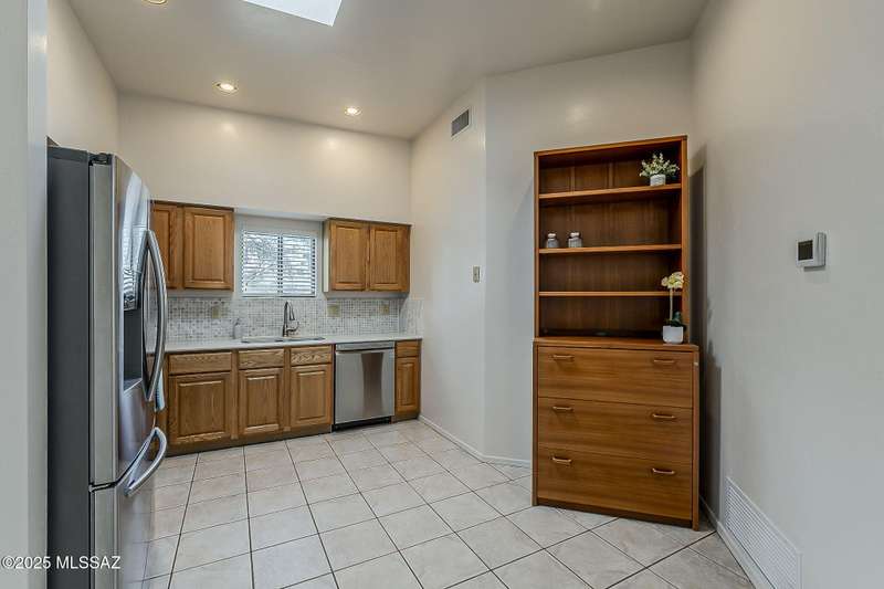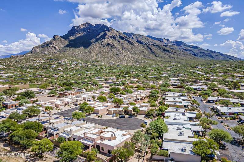Discover the charm of this Ron Robinette-designed Southwestern townhome, tucked away in the desirable Oro Valley community of Desert Willows. Perfectly positioned on a private cul-de-sac lot w/just 1 neighbor, this home offers both tranquility & stunningviews of majestic Pusch Ridge from your frontyard. Step inside to soaring ceilings & a bright, open great room freshly painted for a crisp, modern feel. Updated kitchen shines w/quartz countertops, stylish tile backsplash, & plenty of space for creating your favorite meals. Relax year-round on the screened porch or enjoy peace of mind w/newer HVAC system for efficiency & comfort. Low-care yard makes maintenance a breeze, so you can spend more time taking advantage of the community's sparkling pool & the relaxed Oro Valley lifestyle.