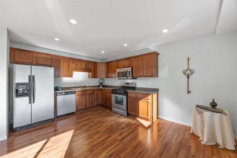 Why rent when you can own? This move-in ready, open floor plan condo offers maintenance-free living in a great location near schools, parks and shopping. Spacious great room/eat-in kitchen features stained birch hardwood cabinets and stainless steel appliances. Two large, bright bedrooms with large closets will surely fit your needs for a primary bedroom and office area. Luxury vinyl flooring throughout the main hall, bedrooms and closets. Three large storage closets and a laundry closet in the unit with washer and dryer that stay! The bathroom has ceramic tile flooring and solid surface countertop with fiberglass shower, bathtub and surround. New A/C unit and water heater are an extra plus! Did we mention a central vacuum system for easy cleaning? What about that the low HOA fee covers not only snow and lawn care services, but paid WATER? Want to bring that puppy or kitten with you? HOA allows 2 pets (weight restrictions apply). No rentals allowed. This unit is ready for a new owner to love and enjoy the security and peace and quiet of a small HOA with great neighbors!