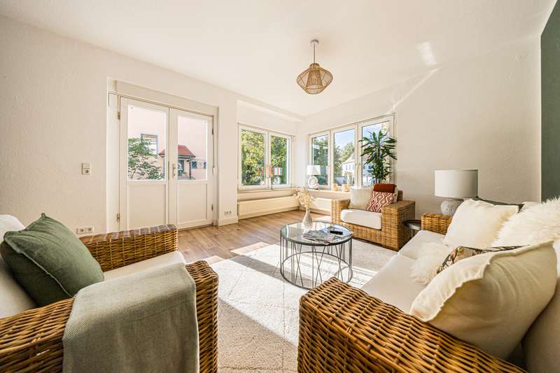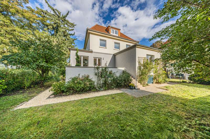 Welcome to an extraordinary city villa in the immediate vicinity of the idyllic Saale promenade in Weißenfels. This stylish, extremely well-kept and spacious villa not only offers a first-class location, but also a unique living ambience with a spacious and lovingly landscaped garden plot. The magnificent old trees create an inviting atmosphere and promise relaxed privacy. The prestigious entrance leads through an elegant vestibule directly into the hallway, from which you can enter the various areas of the house. The kitchen impresses with a brand new fitted kitchen, which was equipped with high-quality electrical appliances from Bosch in 2024. Particularly noteworthy is the stylish solid wood worktop made of European oak, which is a real eye-catcher. The tiled splashback has been renewed with handmade tiles from Equipe Ceramicas, giving the kitchen a special charm. Underfloor heating provides additional comfort. On the first floor, in addition to the kitchen, you will also find a spacious dining room, a cozy living room and a guest WC. The bright room to the rear is particularly impressive and is ideal as a work or hobby room. From the living room, you can access a wonderful elevated terrace with hard-wearing wooden flooring - the perfect place for socializing outdoors with a view of the well-tended garden. The stylish staircase in the hallway leads to the upper floor, where two further welcoming rooms await you. Particularly noteworthy is the picturesque view of Weißenfels Castle, which makes these rooms something very special. The spacious bathroom is designed in an elegant Italian style and offers pure relaxation with a shower and bathtub. The high-quality sanitary elements from Villeroy & Boch and Geberit guarantee the highest quality. The converted attic offers two further spacious rooms that are ideal as guest rooms. Additional storage space is available through access to the attic. A modern low-temperature condensing heating system with smart home control was installed in the basement in 2024 - energy-efficient and future-oriented. This urban villa combines stylish living, modern fittings and a top location. Don't miss the opportunity to make this special property your new home. Contact us for more information or a viewing - we look forward to hearing from you!