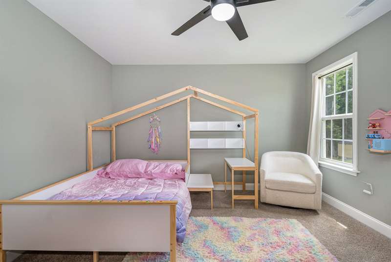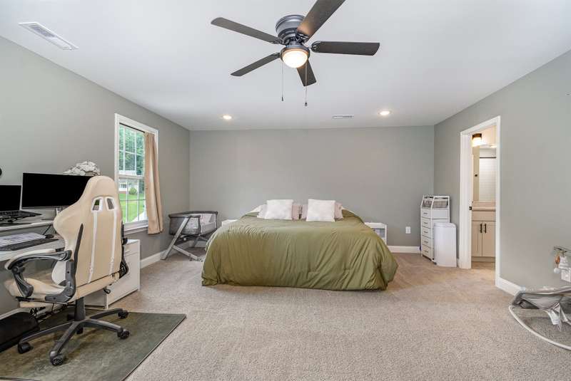 Welcome home to a property that combines comfort, functionality, and style. Nestled in a serene cul-de-sac, this home offers an ideal living environment for first-time buyers or growing families. An open layout connecting the kitchen, breakfast area, and living room?perfect for everyday living and entertaining. Modern kitchen with gas stove, island and granite ctops. Guest suite located on the main level ideal for visitors. Primary bedroom with an en-suite bathroom featuring dual sinks, a separate tiled shower, and generous walk-in closet. Two additional BR's on the second level, plus a bonus room that can easily transform into a fifth bedroom or a playroom. Enjoy the outdoors with a covered front porch and an expansive deck in the back that is partially covered. The large backyard gives ample space for play and gardening. This home is perfectly tucked away from the hustle and bustle, yet within easy reach of essential amenities. MORTGAGE IS ASSUMABLE.