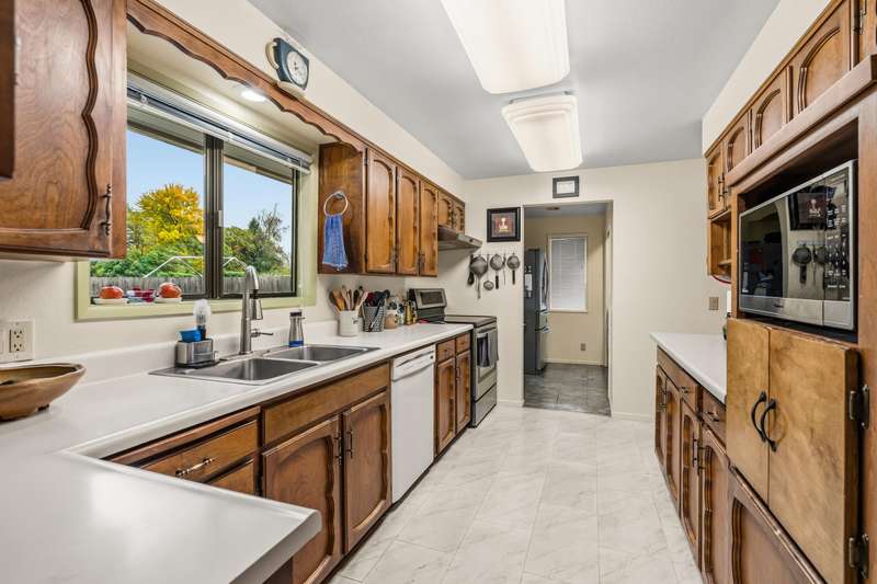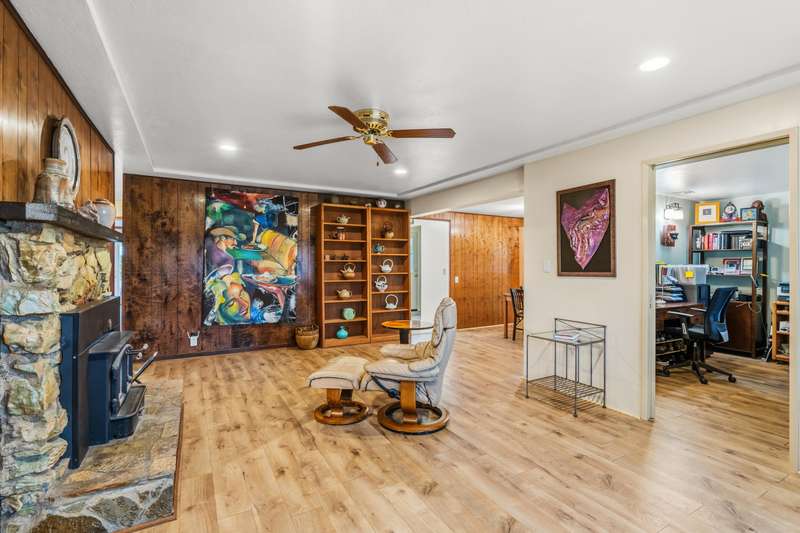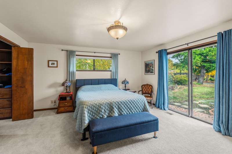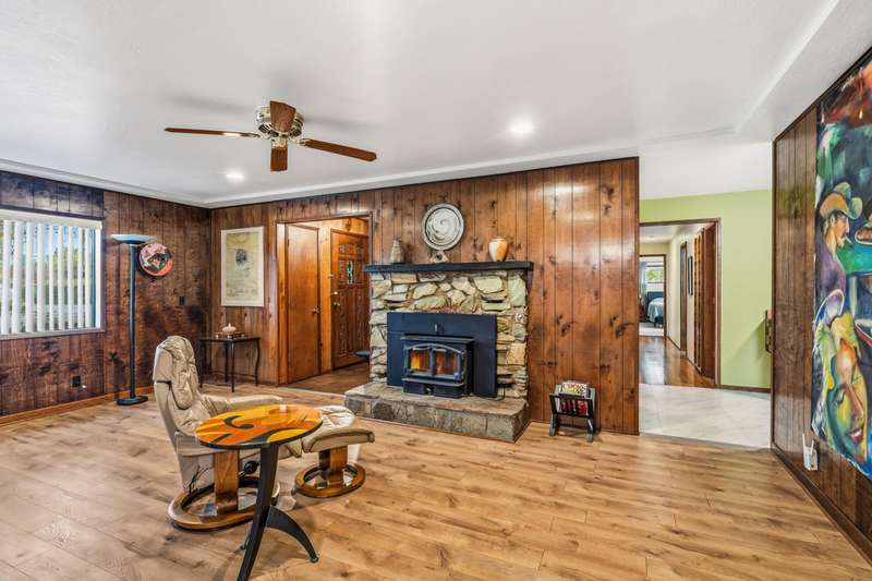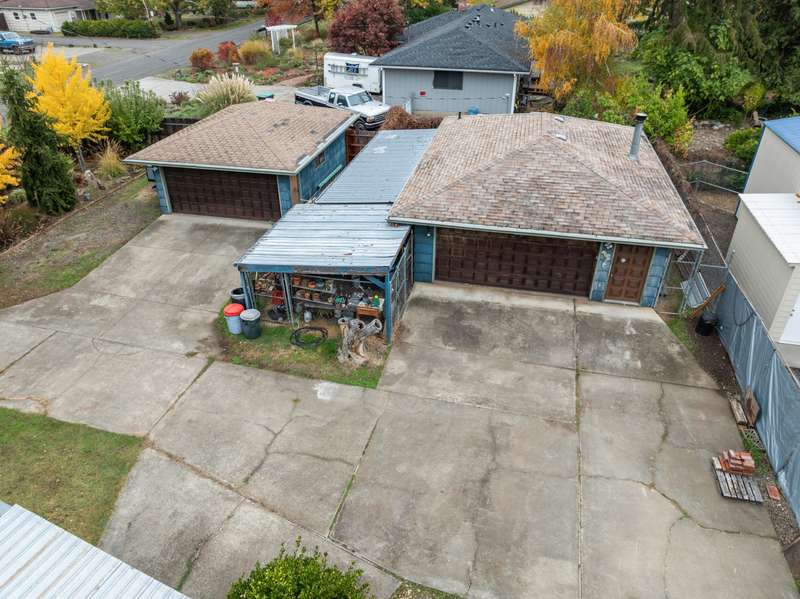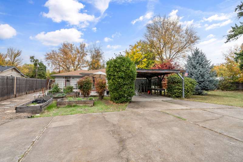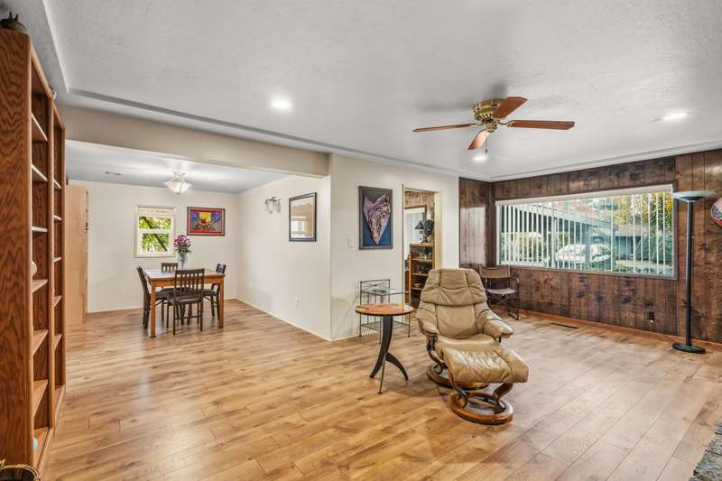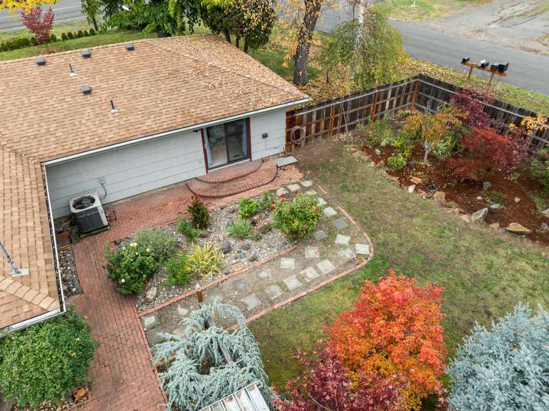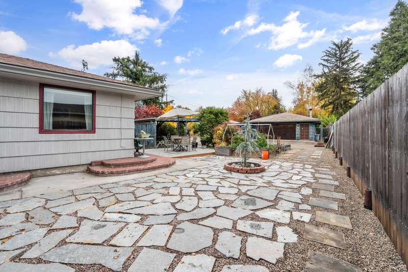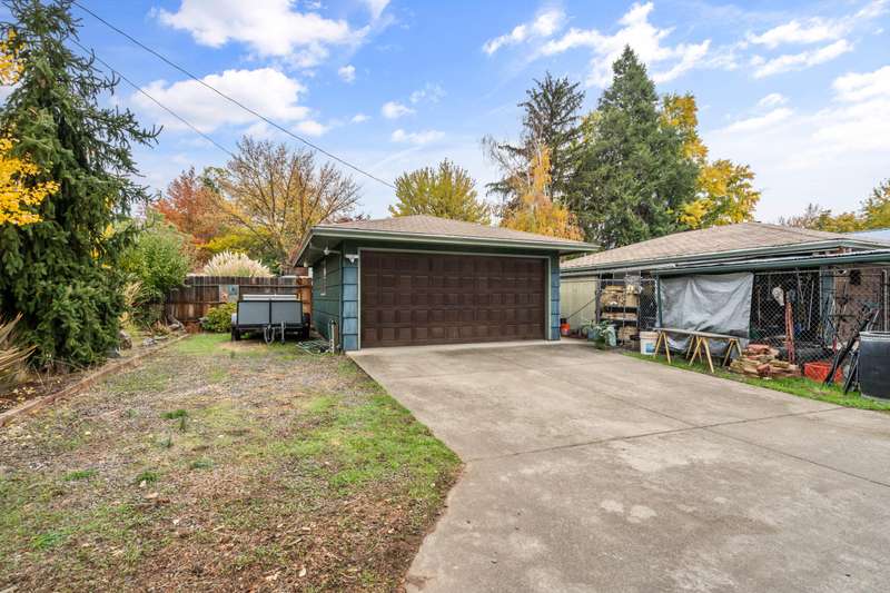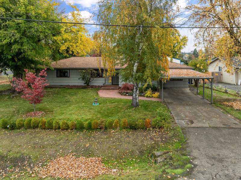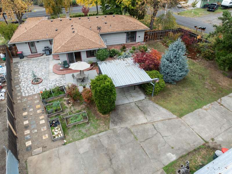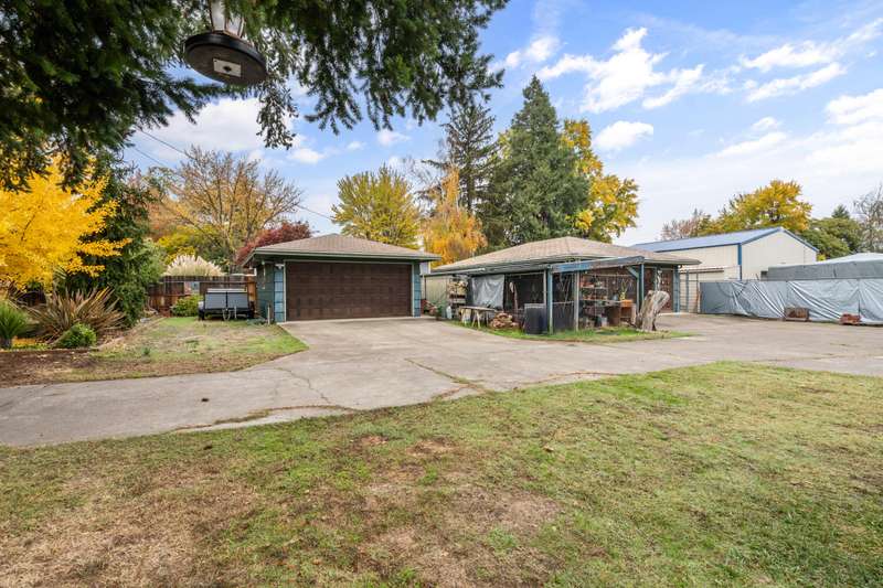 Well-maintained single-level home with workshop on rare 0.42-acre corner lot in a super convenient yet quiet East Medford location! This 2,168 sqft home features 3 bedrooms + office, 2 bathrooms, warm wood details and laminate flooring throughout. Cozy wood-burning fireplace with stone surround in the living room. Spacious primary suite offers a walk-in closet and ensuite bathroom with tile floors and tub/shower. Enjoy the lush, park-like setting with mature trees, fruit trees, garden beds, and decorative pathways—all on an automated sprinkler system. Relax or entertain in the fenced backyard with deck and flagstone patio. New exterior paint. Ample parking with 2-car garage, 2 carports, plus large detached workshop with bathroom & attached covered storage area. 2nd gated entry off Grand Ave provides additional access and possible development potential. A rare East Medford find blending space, quality, and potential!