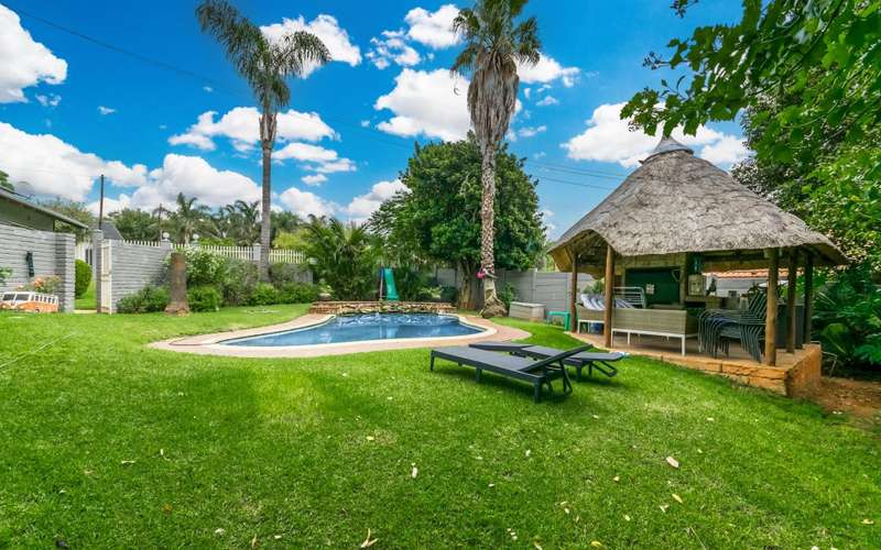 Leads onto pool area with Lapa and built in braai.