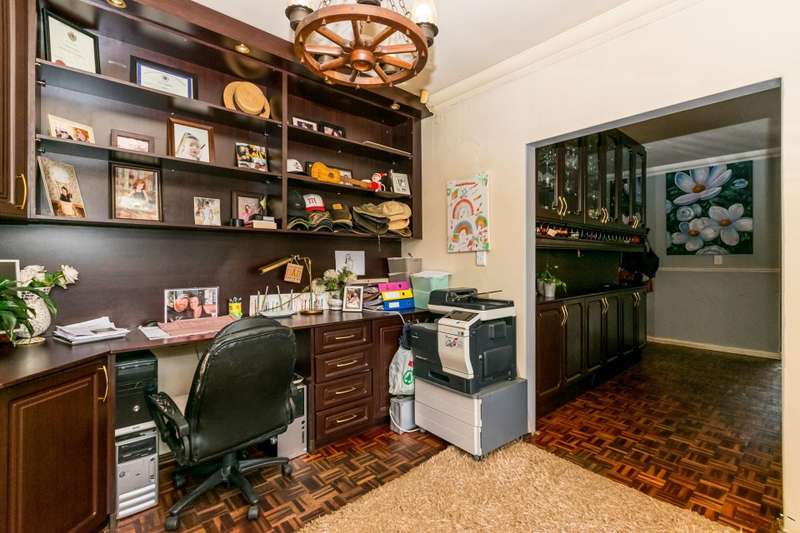 Beautiful rich, Classy office/Study/Library area, with built in wooden cupboards, TV/Family room with fireplace and easy flow onto casual dining, open plan entertainment room.
