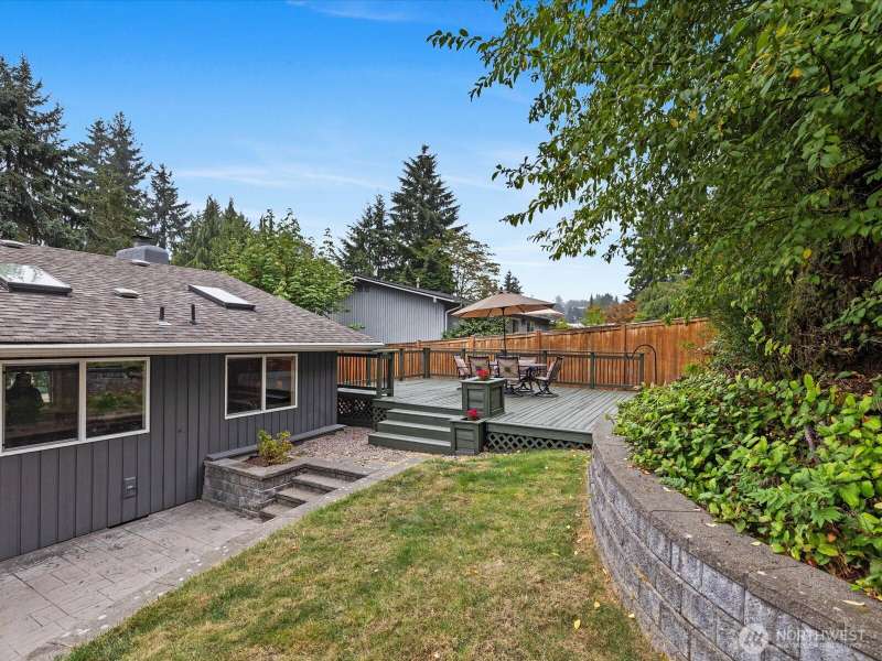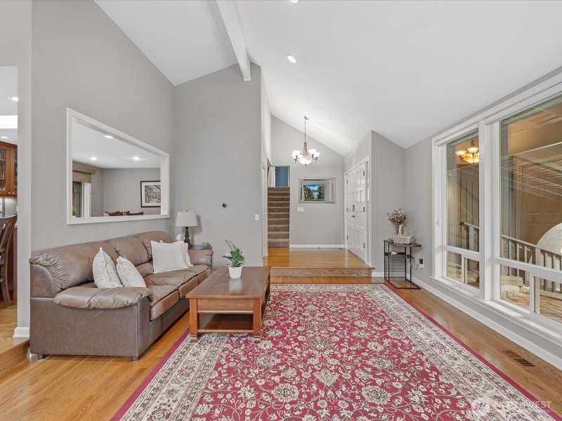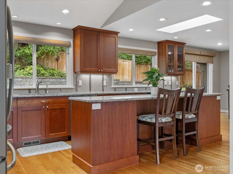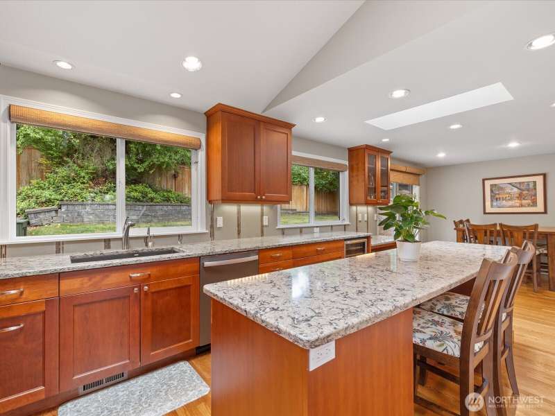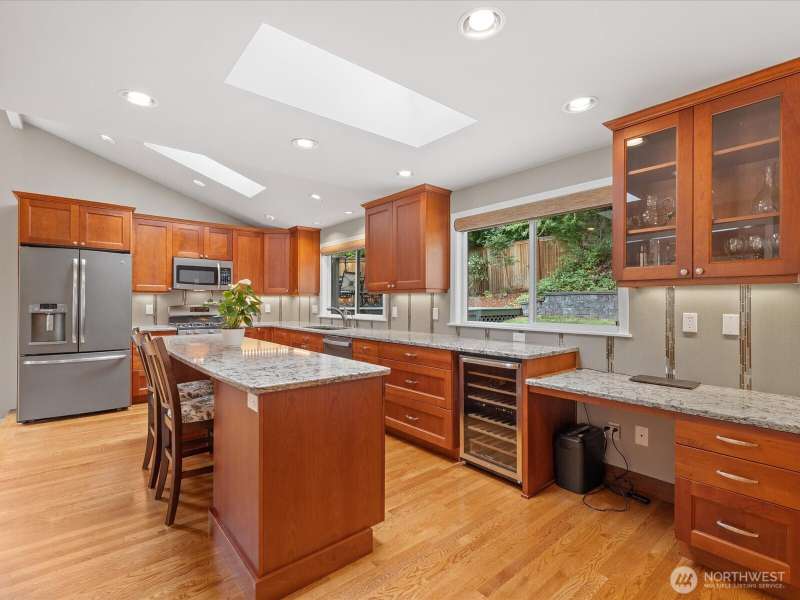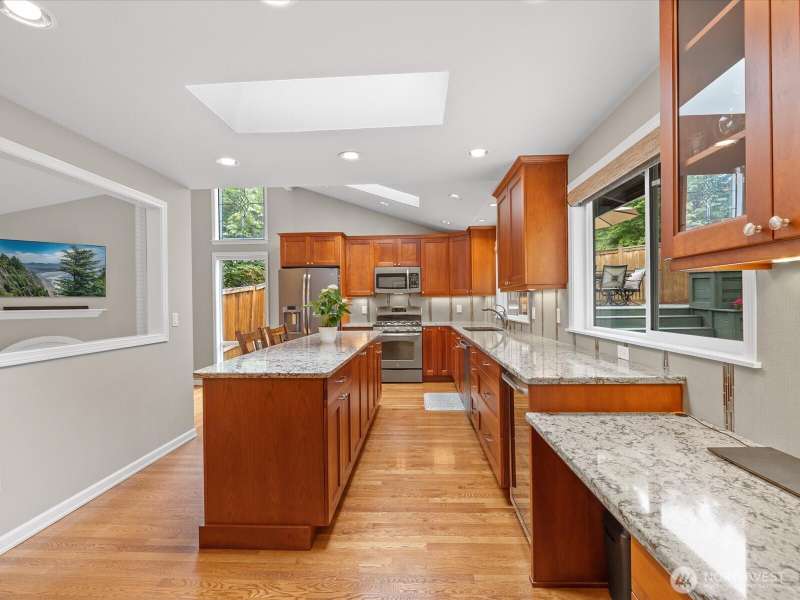 Wonderful Whispering Heights home in the award-winning Bellevue School District, centrally located to the I-90/405 freeways makes this an ideal location. Remodeled tri-level home is graced with hardwood floors, skylights & vaulted ceilings. Open floor plan includes inviting living room with extra-large windows to showcase the natural light. Gourmet kitchen offers granite counters, stainless appliances, & expansive center island. Three bedrooms upstairs finds primary w/stunning ensuite bathroom with heated floors, multi head shower & custom closet. Downstairs you'll discover a cozy family room, additional bedroom & 3/4 bath, ideal for guests. Central A/C. Enjoy the serene, private yard with stamped patio & deck perfect for entertaining!