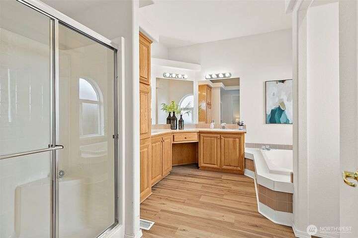 Beautifully updated, single level condominium nestled in the desirable 55+ gated community of Water Gardens. This neatly maintained property offers the perfect blend of comfort, convenience, and low maintenance living. Enjoy move in ready upgrades, such as durable vinyl plank flooring and brand-new plush wall to wall carpet throughout. Equipped with forced air heating and central a/c for year-round comfort. Plus, exceptional parking inside an attached 2 car garage to stay out of the weather and a community RV parking/storage lot. Easy access to local business hubs, shopping, and restaurants. Pre-inspected for your peace of mind.