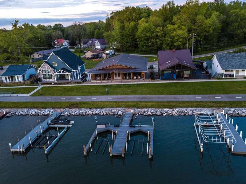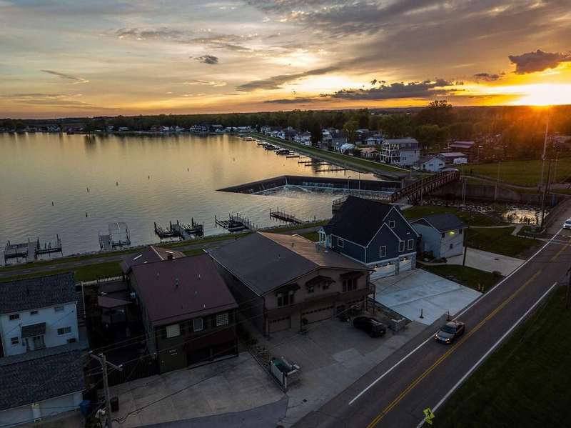 ALMOST 5000 SQUARE FEET! NEW ROOF & SIDING COMING IN NOVEMBER!Get ready to unwind and bask in some of the most spectacular sunrise and sunset views on Buckeye Lake while sitting lake front on your covered concrete patio which runs the length of the home! This immaculate, open concept, huge great room with gorgeous white washed cedar walls and ceiling offers lakefront living like no other! House even has a four-car garage! Wall to wall windows, custom cabinets, cathedral ceilings, wood flooring, storage galore, huge pantry, and stainless appliances, are just a few of the outstanding amenities in this gorgeous home! This two story allows you to also park your boats outside your lakeside front door and is just steps away from your two solar hoisted lifted boat docks which are ready for you to simply jump on your boat and go enjoy the lake! Four bedrooms (possible 5) and four baths in this spacious, almost 5000 square foot home (1000 square footage of garages, 2000 square footage of finished lower level, and 2960 lakefront level) is ready for you to move in and enjoy year-round lake living at it's finest! The lower level could be a wonderful in-law suite or even a rental with separate entrances; there is even a garage area for it right outside it's door! Walk along the biking/walking path to local restaurants and shops, the Yacht Club, or even the North Shore Boat Ramp! Properties like this one rarely come available, so schedule a showing today!