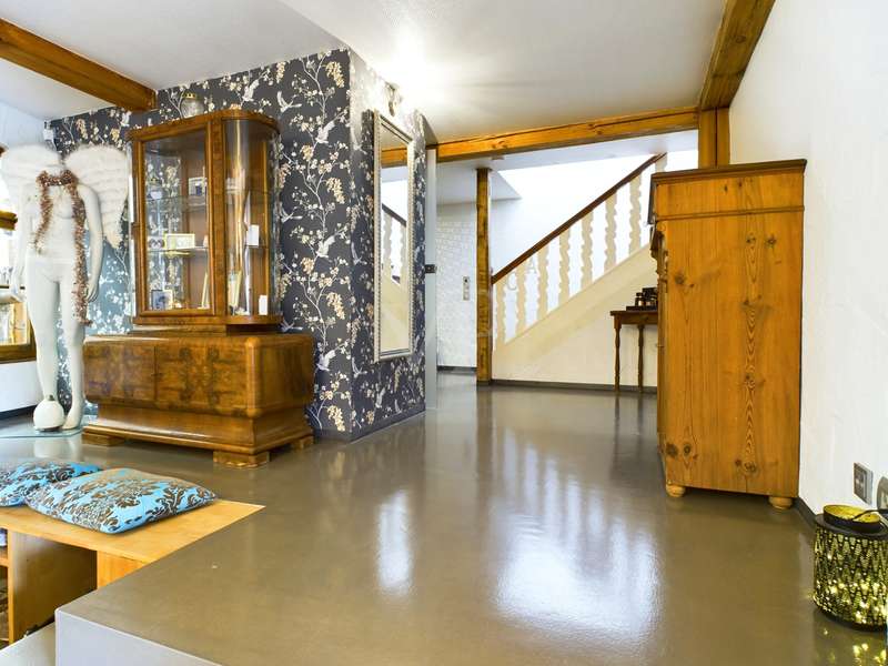 One like no other... ...should at least come close to doing justice to this historic ensemble in the Lower Franconian part of the Rhine-Main region. At the center of the ensemble, which consists of a main house and two outbuildings, is a beautiful courtyard with mature trees and ample parking. The main house, which still shows its original use as a dance hall and discotheque, is a real delight for individualists, creative people and lovers of open spaces. Designed on two levels with great attention to detail, it offers several living areas with separate kitchens and bathrooms on almost 500 square meters. In addition to this personal creative space, there are also five rented units on the site, which generate an annual income of around EUR 50,000 including the feed-in tariff from the PV system, which is also present. The property underwent its first major renovation and modernization measures in 2003, and in 2020 the current owner once again brought it up to date visually and technically with great attention to detail. Are you interested in finding out more about this promising investment with lots of potential and charm? The von Poll Team Aschaffenburg looks forward to hearing from you!