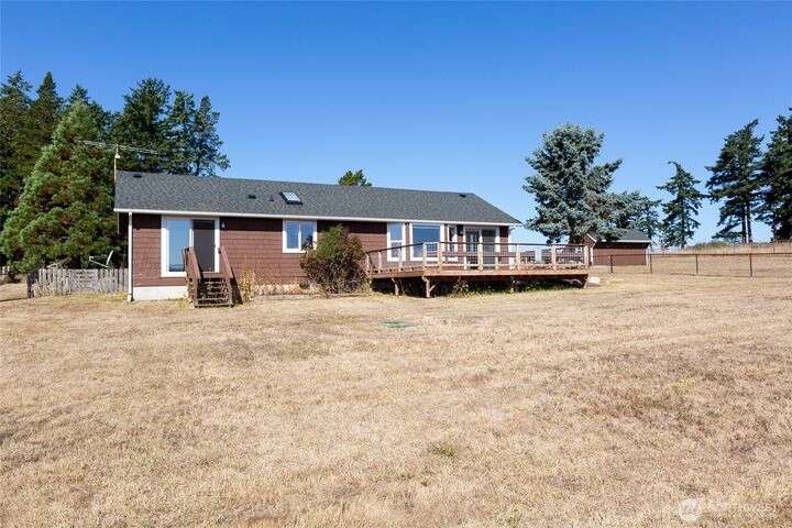 Welcome to 549 Davis Bay Rd., where island living meets country charm. Set on ten sunny, open acres, this well-designed 1,821 sq. ft. home features two spacious bedrooms and 1 & 3/4 baths, perfect for comfortable year-round living or a serene weekend retreat. Vaulted ceilings and large windows frame sweeping pastoral views, bathing the living spaces in natural light. Enjoy open-concept living, a generous kitchen, and cozy gathering areas designed for relaxed entertaining.Bring your animals or hobbies—this property offers rich pastures and a versatile 3,000 sq. ft. barn ready for livestock, storage, or workshop use. The well house and outbuildings add to the property’s practical appeal. Located minutes from Fisherman Bay and Lopez Village,
