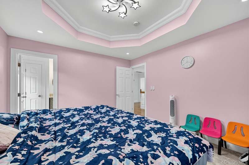Beautifully Updated 4,578 Sq Ft Lennar-Built Corner Colonial with Sunroom, 3-Car Garage, Mudroom, Home Office and Finished Lower Level Briarcliff Estates Monroe-Woodbury Schools. This 4,578 sq ft Lennar-built colonial set over .50 acres blends high-end craftsmanship with beautifully curated designer enhancements throughout. Enjoy the entire 4,578 sq ft of beautifully finished living space spanning three levels, including a fabulous finished lower level. A dramatic two-story entry with custom box moldings sets an elegant tone, complemented by freshly painted interiors in designer-selected colors and young high-end plush carpeting on the upper level and staircase. Sunlight fills every corner thanks to abundant windows and the elevated setting, creating a joyful, bright interior even on cloudy days. The spacious, open eat-in kitchen offers excellent workspace and cabinetry, along with a newer island cooktop, dishwasher, and DACOR built-in refrigerator. It flows directly into the huge sunken family room, creating the ideal layout for everyday living and entertaining easily cook while enjoying company or keeping an eye on little ones. A stately formal dining room opens seamlessly to the formal living room, providing a gracious setting for holidays and larger gatherings. A first-floor home office adds the perfect private workspace. A convenient mudroom off the 3-car garage offers everyday practicality for busy households and seasonal items. The home features two gas fireplaces one in the formal living room and one in the family room adding warmth and elegance to both spaces. A rare and prized highlight is the fabulous sunroom, perfect for three-season enjoyment. Dine, relax, work, or play while bringing the outdoors in without the bugs with an additional refrigerator for effortless entertaining. Upstairs, the primary suite offers a tremendous walk-in closet, highest-quality carpeting, and a spa-inspired marble bath. The Princess Suite features its own beautifully updated full bath and generous walk-in closet perfect for multi-generational living, guests, or teens who love their own space. The guest bath has been fully renovated in a warm modern-farmhouse style. Upgraded modern LED recessed lighting throughout the home adds a bright, refined ambiance. The full finished lower level adds approx. 1,395 sq ft of flexible living space, including a large family/rec room, home office/gym, generous storage, and a tremendous bar possible 2nd kitchen. Perfect for entertaining, guests, hobbies, or work-from-home needs. Outdoors, enjoy a premium elevated corner lot with privacy, extensive professional landscaping and hardscaping, river rock accents, added drainage, fenced yard, and a beautiful patio for outdoor living. The driveway was recently blacktopped and sealed. Additional upgrades include Tesla charger wiring, professional epoxy-finished 3-car garage floor, UG sprinklers, high-end GE washer and dryer included, and replaced 2-zone heat and central air systems. Water, sewer, and natural gas complete the picture in this desirable sidewalk community.