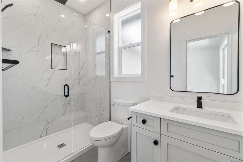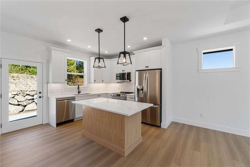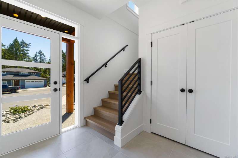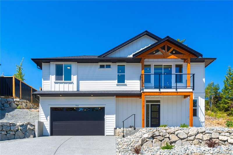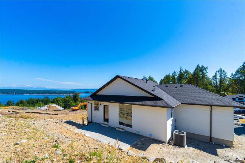 Welcome to this stunning 4 bedroom, 3 bathroom ocean view home including 1 bedroom legal suite! Crafted by Owen Gardiner Construction Ltd, this brand new build spans over 2300 sqft and boasts a spacious main living area with open concept kitchen, dining and great room areas. The home is perfect for hosting family gatherings or entertaining friends, whether cozied up by the fireplace indoors or enjoying views of the ocean from the outdoor sundeck. The primary suite is spacious with large walk in closet, and three piece ensuite. Two more sizeable bedrooms, and a four piece main bath complete the main floor. The lower level offers a mudroom and a two-car garage for the main house, as well as the ample one-bedroom suite that boasts its own private entrance and separate laundry. Nestled on a generous 10,977 sqft lot in a peaceful, family friendly neighbourhood, this home is just a short drive from all essential amenities. All measurements are approximate & should be verified if important.