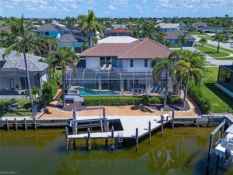 Welcome to a boater s paradise! This stunning two-story waterfront home offers direct gulf access and breathtaking canal views, perfect for relaxation and entertaining. With a southern exposure saltwater pool and spa that are designed for all-day sun and a beautiful waterfall feature, you'll have your ideal outdoor oasis. Inside, the home features four spacious bedrooms each with an en-suite bath plus a versatile den, two half baths, and a two-car garage. Soaring ceilings and expansive windows fill the space with natural light, while new impact doors and windows provide both aesthetic appeal and storm protection. The chef s kitchen is outfitted with elegant white shaker-style cabinetry, quartz countertops, and a stylish tile backsplash. Top-of-the-line appliances include an electric cooktop, double wall oven, microwave, refrigerator/freezer, and dishwasher. The cozy breakfast nook, with its bay window overlooking the water, is the perfect spot to enjoy your mornings, while the formal d