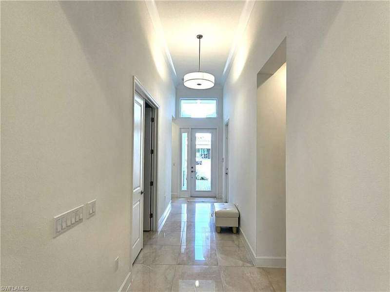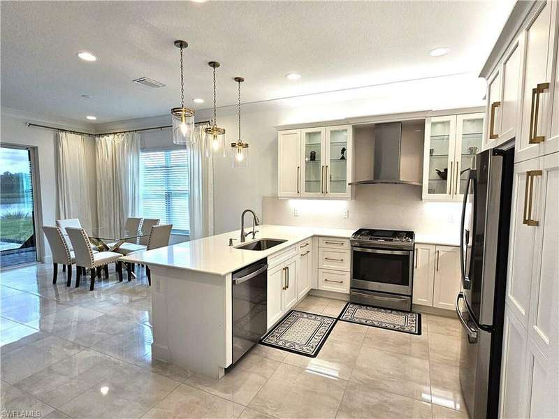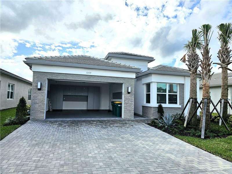 Exquisite 2024-built home with southern exposure and desirable privacy! This stunning and spacious 3-bedroom plus den, 3-bathroom home is perfectly positioned on one of the most desirable lots at Valencia Trails, offering serene views of the lake and preserve for added privacy. The southern exposure ensures you'll enjoy sunshine throughout the day, while the extra-extended lanai provides the perfect space to relax and soak in the breathtaking scenery. For the culinary enthusiast, the designer-inspired kitchen is equipped with natural gas and boasts an oversized island with seating that opens seamlessly to the living area. This layout creates an inviting space for entertaining while offering beautiful views of the private yard, lake, and preserve. Located in the highly sought-after gated community of Valencia Trails, this home offers the ultimate Florida lifestyle. Enjoy world-class amenities, including a 43,000 sq. ft. clubhouse, a 10.7-acre recreation complex, and miles of scenic walking trails. Whether you're swimming, playing pickleball, meeting friends for lunch, joining a poker game, or attending a Broadway-style show, Valencia Trails offers endless opportunities to live your dream life!