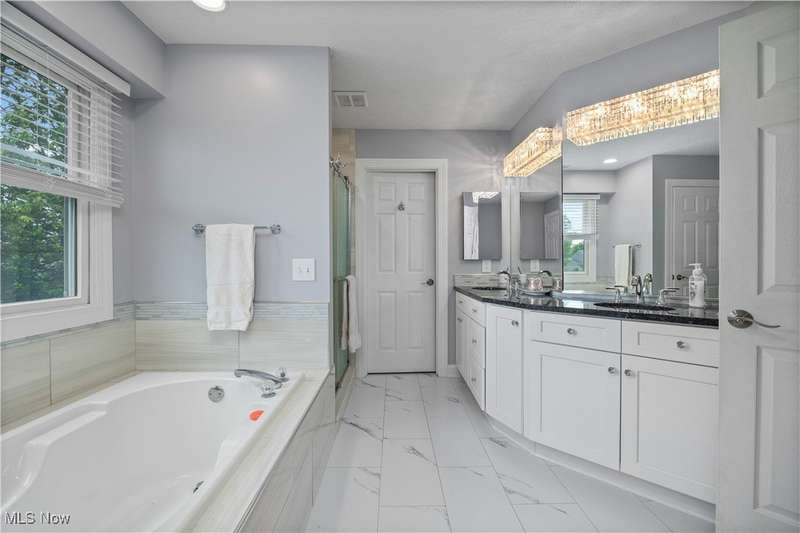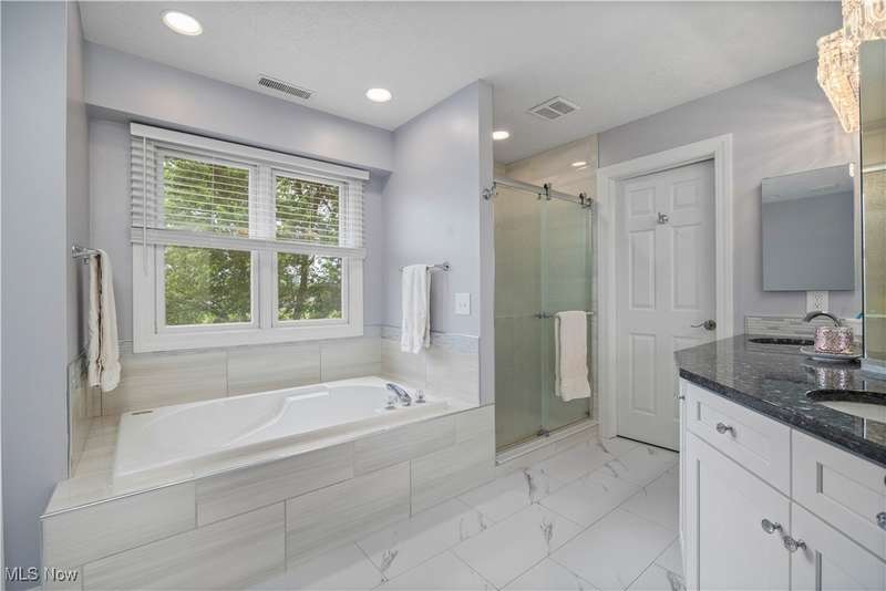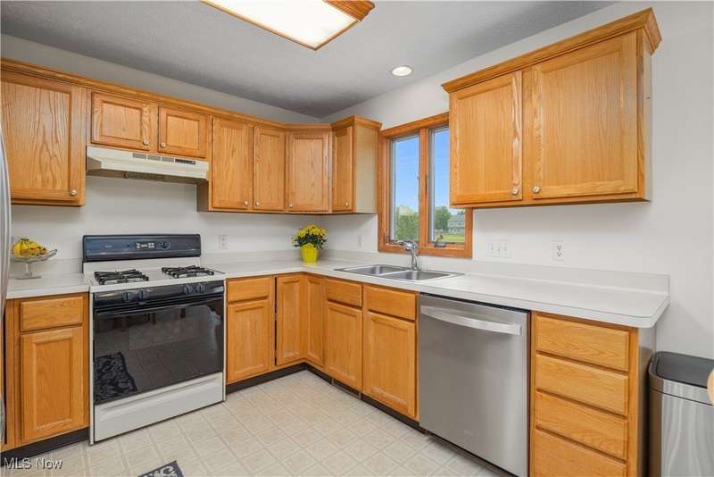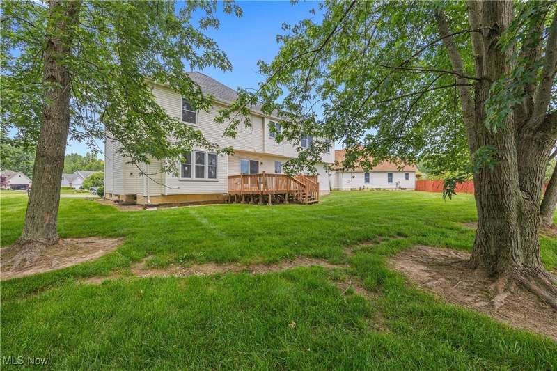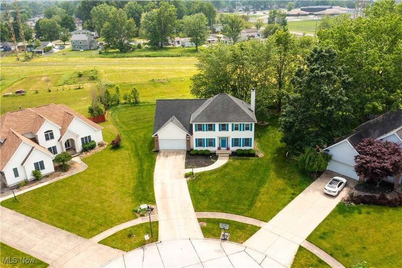 Welcome to this one owner, well maintained FOUR bedroom home! Nestled in a "no through traffic" development consisting of only two culdesac streets! Conveniently placed from conveniences: just around the corner from the elementary school, 4 minutes to the Academic Campus, 10 minutes to Avon Commons, 12 minutes to Crocker Park! As you pull up to the home you'll note a nice sized concrete driveway and an attractive exterior complete with a hip style roofline. A center two story entry foyer makes for a great first impression! Formal dining space and living room/den. Nice sized family room with gas fireplace and triple window overlooking the backyard. The eat in kitchen is nicely configured with a double pantry and appliances remaining. First floor laundry room with nearby half bath. You'll love the upstairs layout with four nice sized bedrooms and recently installed (2025) neutral carpeting! Remodeled full bath w/ granite top vanity, newer floor! Owner's suite with tray ceiling is impressive and spacious with many great features, two walk in closets, sitting room AND a recently remodeled full bathroom complete with soaking tub, walk in tile shower, double bowl vanity sinks! Full basement for your finishing touches or storage. Step outside to a rear deck and a 1.19 acre homesite. The property extends way into the grassy area (see survey attached to disclosure). Overhead wires/ retention space located within the rear homesite, so it's as if you have your own protected nature preserve extending beyond your "standard" backyard space without the need to mow/maintain the entire acre! A lovely home awaits your arrival and continued enjoyment!