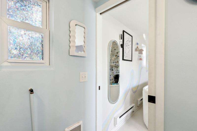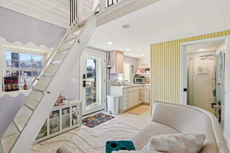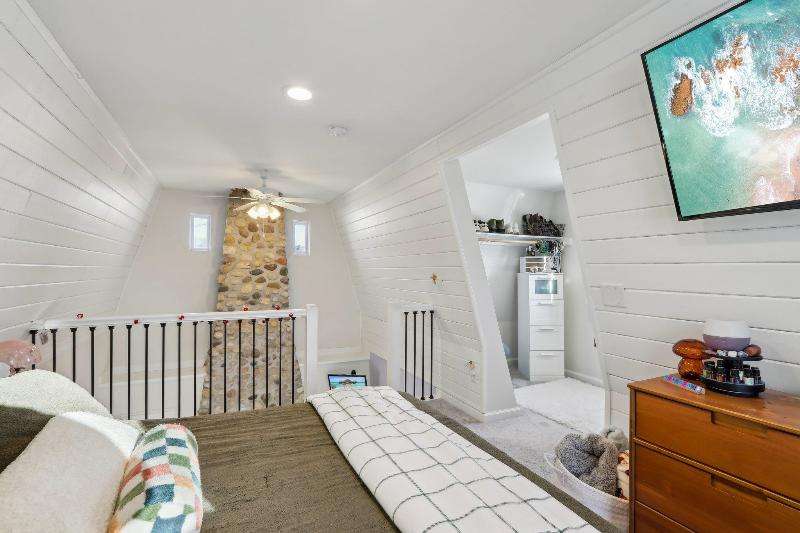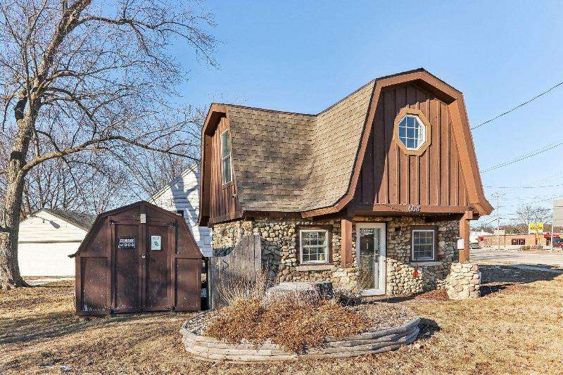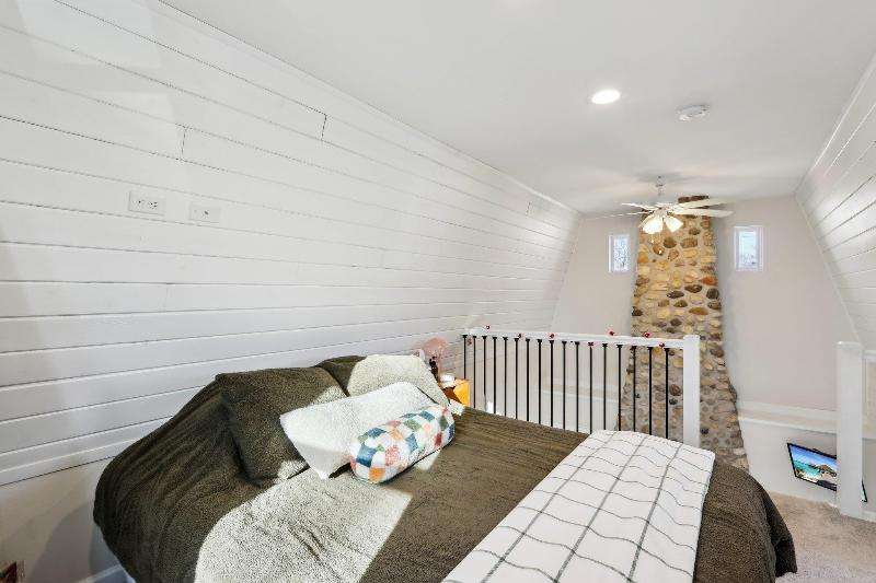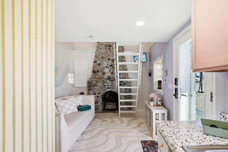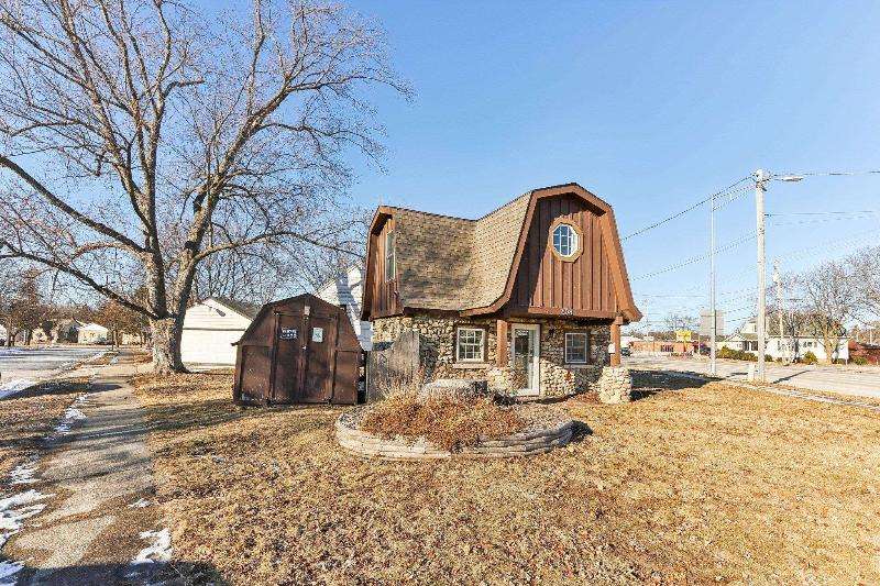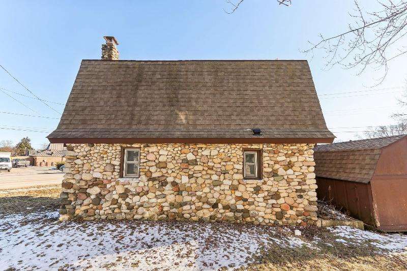 Whimsical and unique, this 1930s tiny home has been beautifully renovated to offer modern comforts while preserving its charming character. Designed for cozy living, it features a striking floor-to-ceiling fieldstone fireplace, a galley kitchen, and a full bathroom on the main floor. New washer/dryer combo. Heated floors add a luxurious touch--perfect for staying warm and comfortable during the winter months. The lofted bedroom showcases tasteful shiplap paneling and a spacious closet that could also serve as a home office. Outside, a detached shed provides extra storage with potential for a future garage.