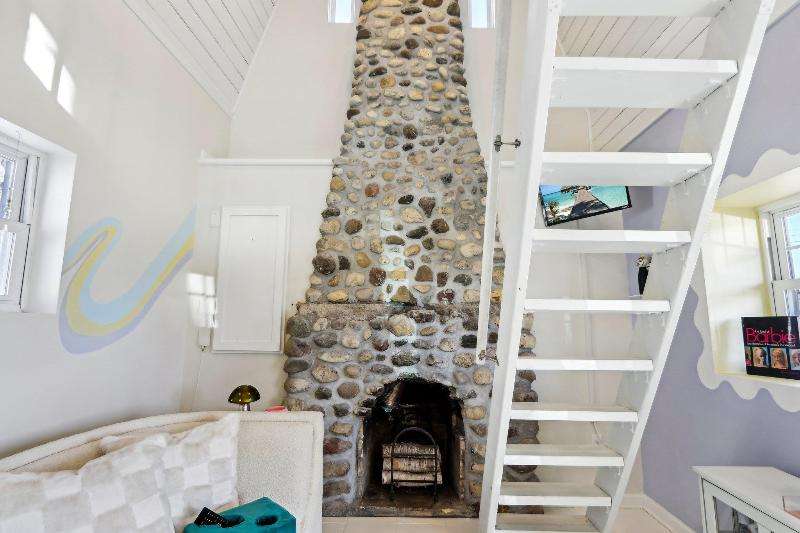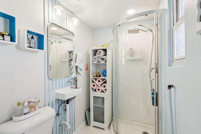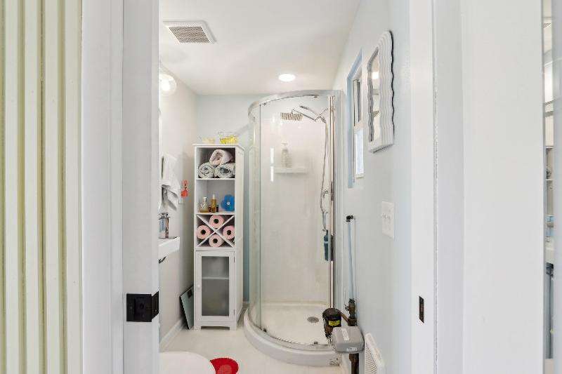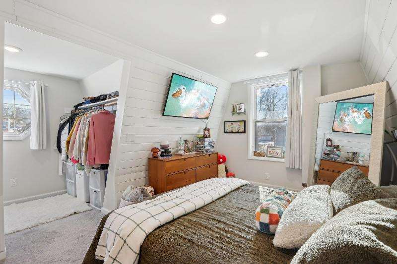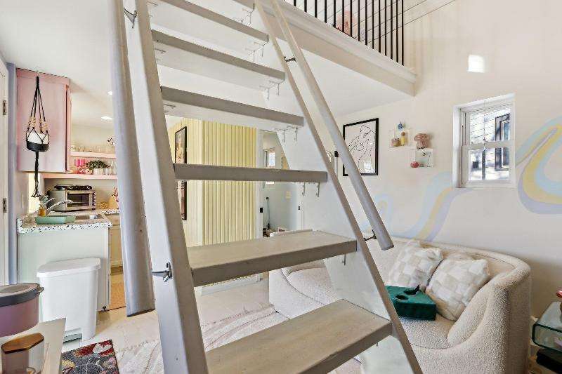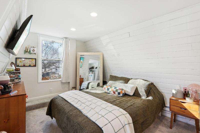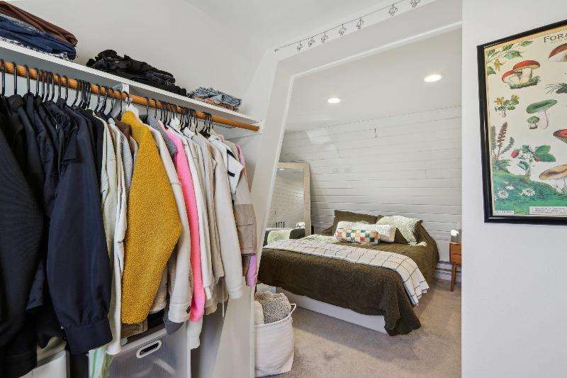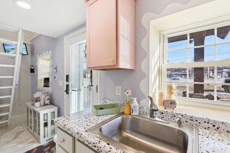 Whimsical and unique, this 1930s tiny home has been beautifully renovated to offer modern comforts while preserving its charming character. Designed for cozy living, it features a striking floor-to-ceiling fieldstone fireplace, a galley kitchen, and a full bathroom on the main floor. New washer/dryer combo. Heated floors add a luxurious touch--perfect for staying warm and comfortable during the winter months. The lofted bedroom showcases tasteful shiplap paneling and a spacious closet that could also serve as a home office. Outside, a detached shed provides extra storage with potential for a future garage.