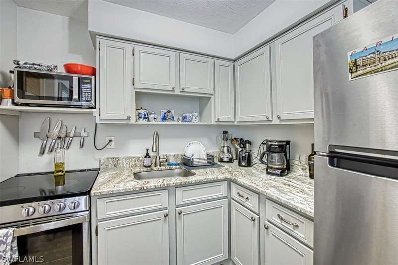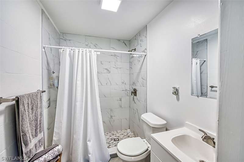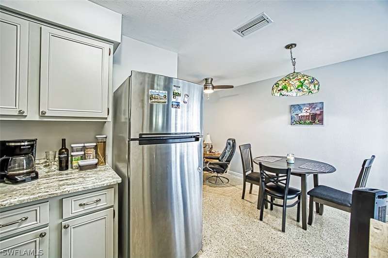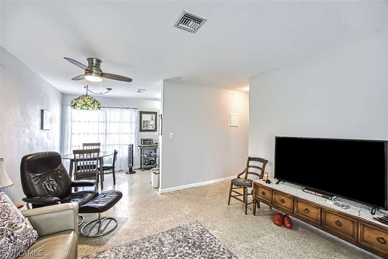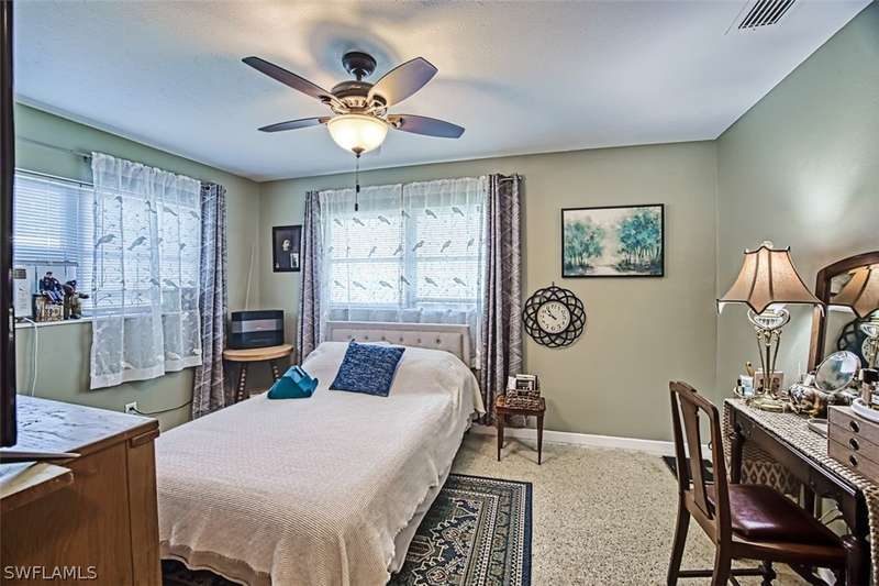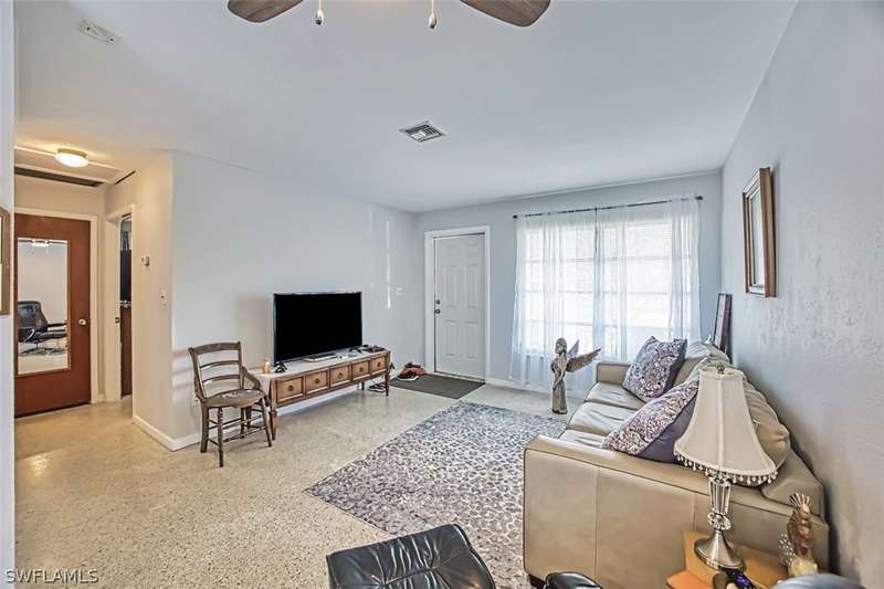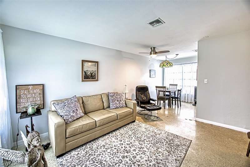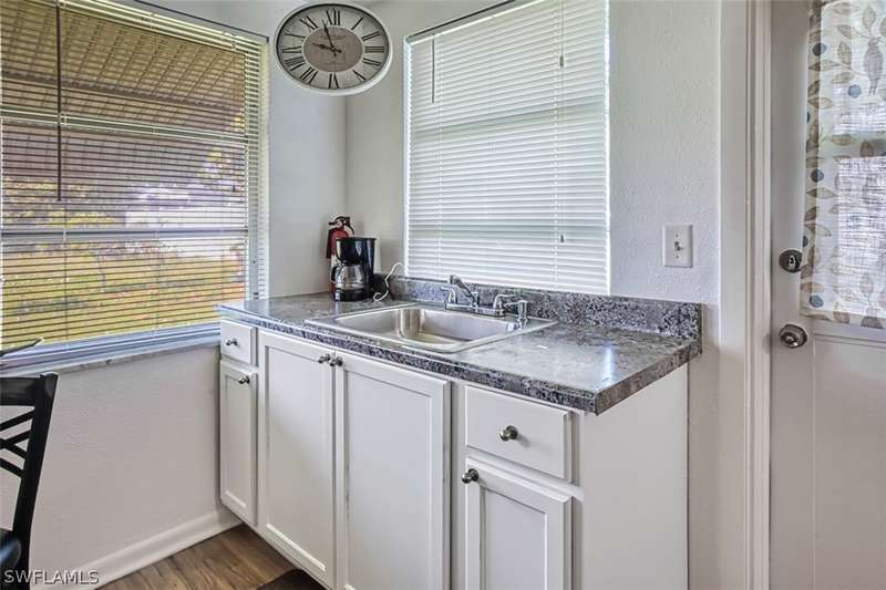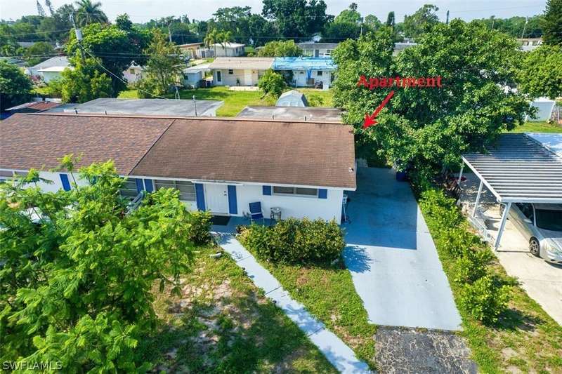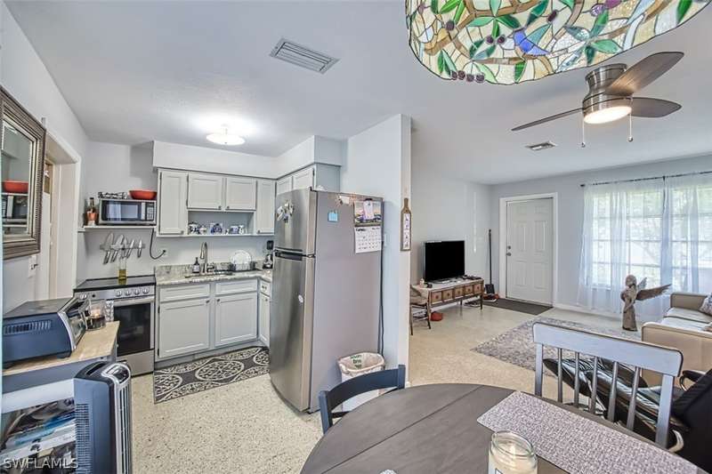 Welcome to 1116 Westminster St W, well positioned in central Lehigh Acres. This villa style half duplex presents with concrete block construction, large front porch overhang adorned with blue shutters and a large front yard with lighted sidewalk from the driveway. Enter to terrazzo flooring and an updated kitchen complete with stainless steel appliances, including a slide in electric range, under-mount stainless sink with wand faucet, light granite counter tops with white cabinets with door and drawer pulls. Two fans in the living room and front bedroom central furnace as well as air conditioning in each bedroom. Beautifully designed main bedroom, full bathroom with dual shower head and second bedroom has an efficiency kitchen and separate side entrance with a new bathroom with stall shower, floor to ceiling rectangular white tile with grey marble streak, square drain and floor tile with brushed nickel finishes. Newer water heater and a well maintained home, move in ready for you to design it for your purposes whether as a primary residence and / or rental unit(s).