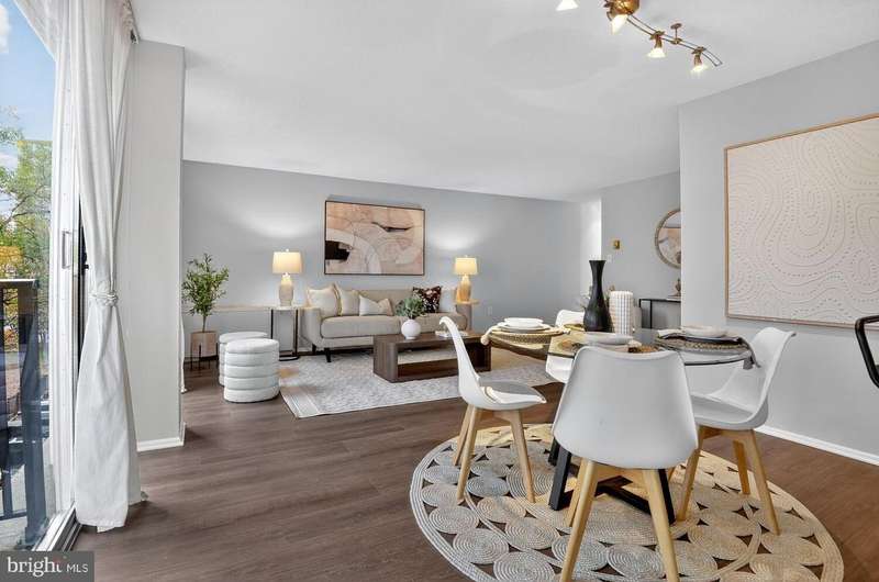 Looking for an updated, stylish yet affordable home in a prime Arlington location? Look no further, this snazzy 1 bedroom corner unit in the Carlton may be just what you need! Brand new LVP flooring and fresh paint complement an updated kitchen with stainless steel appliances, granite counters and newer appliances. The expansive floorplan features a welcoming entry foyer, open living area, dedicated table space, pass through to kitchen with breakfast bar and a large bedroom separated from the rest of the apartment by a hallway loaded with storage options. The unit enjoys tons of natural light courtesy of the floor to ceiling windows and sliding glass door to spacious balcony. Completing the package, an updated bath ensures there is nothing to do here but enjoy the area's many attractions just steps/minutes away: Shirlington, Columbia Pike, parks, library, playgrounds, W&OD trail, and Crystal/Pentagon City. Super easy access to I-395, Reagan National airport, downtown DC, and abundant public transportation options (ART bus right outside). The Carlton, with a recently renovated lobby and common spaces, is loaded with amenities including 24 Hour Concierge, an Olympic-sized pool, a Fitness center, a Sauna/Steam Room, a Jog/Walk Path, and tennis Courts. Condo fee includes all utilities and reserved garage parking spot near the elevators.