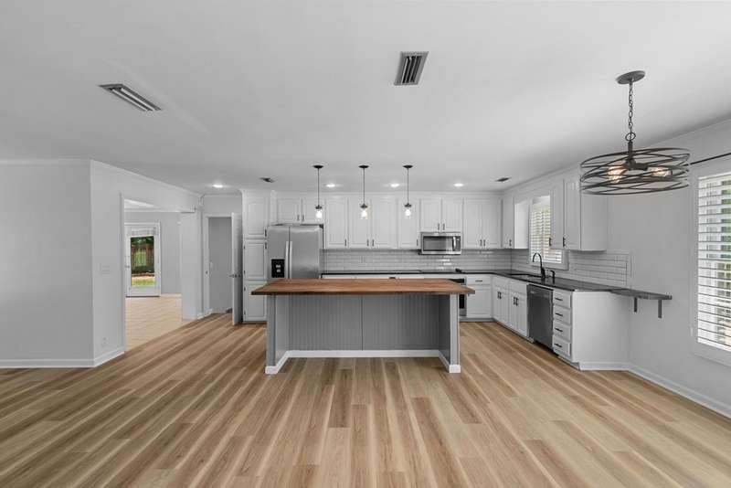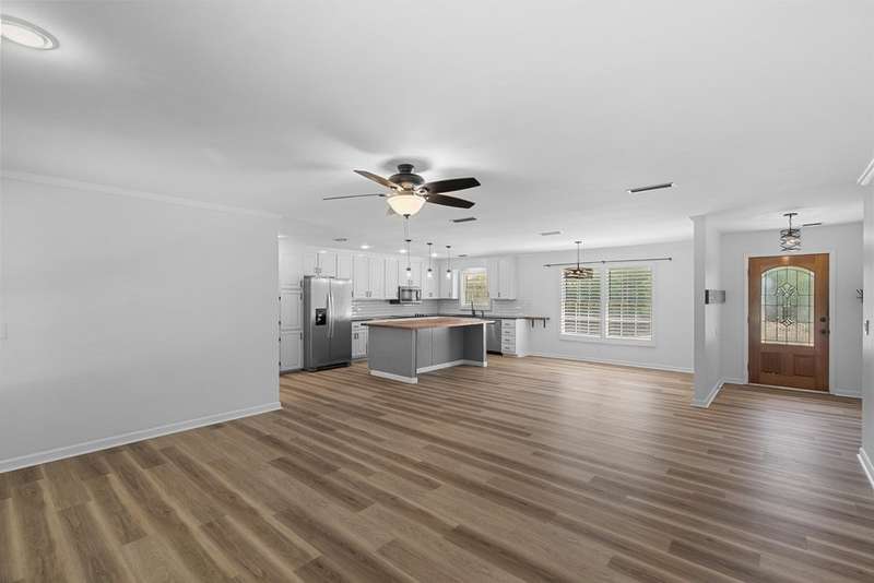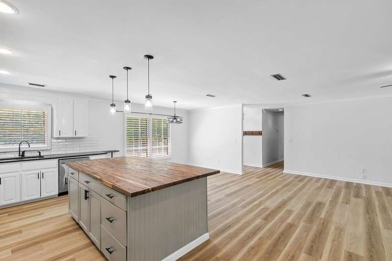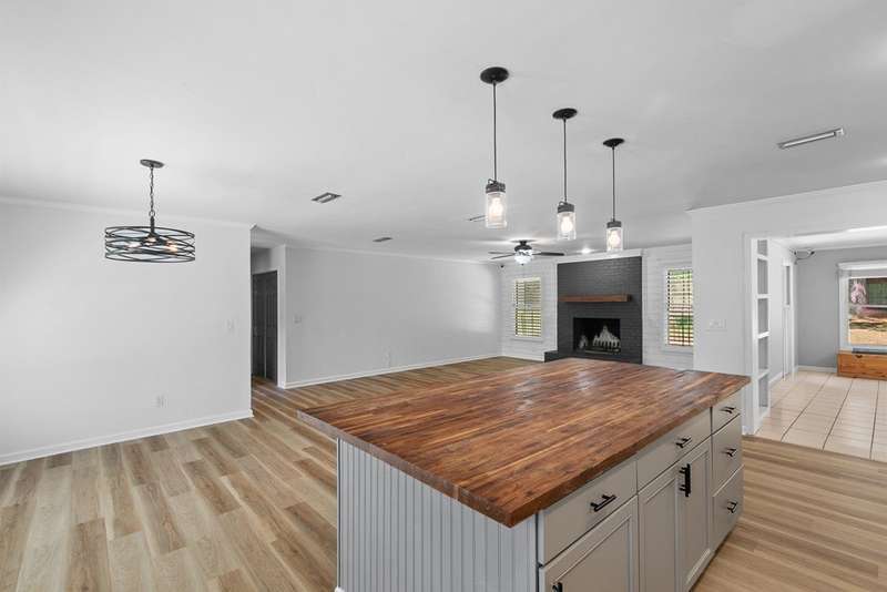 Freshly updated brick home in a prime Dothan location near Westgate Trails. This spacious open floor plan 2650 sq ft home offers 5 bedrooms and 2 baths, with the flexibility of using the large 5th bedroom as a den, complete with an exterior door. The heart of the home is the kitchen, featuring a butcher block island and plenty of space on the granite countertops, perfect for culinary enthusiasts. Enjoy cozy evenings by the brick fireplace or bask in the natural light of the sunroom off the kitchen. The bathrooms have been tastefully updated with tile showers and granite. A large storage room inside, in addition to the attic space and detached storage building, ensures plenty of room for those things you want to hide away. Outside you will also find a generous yard with a large back deck, ideal for outdoor gatherings and relaxation. This home is priced to sell and offers a perfect blend of classic charm and modern updates. Make this your dream home today!