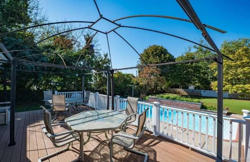 Welcome to this stunning 3,500 square foot Colonial that perfectly blends timeless elegance with modern functionality. This exquisite residence features four spacious bedrooms and three and a half bathrooms, offering ample room for comfortable living and effortless entertaining. Step inside to discover an open-concept main level designed for both everyday living and special gatherings. The expansive living room flows seamlessly into a formal dining area and a kitchen adorned with granite countertops and sleek stainless-steel appliances. A convenient half bath adds to the functionality of the space, while a private bedroom with its own full bathroom provides an ideal setup for multi-generational living or hosting your guests. Upstairs, you'll find two generously sized bedrooms and a full bathroom, along with a luxurious primary suite that serves as a true retreat. The suite boasts an en-suite bathroom and an expansive walk-in closet, offering both comfort and convenience. Outside, the beautifully landscaped yard invites you to relax and entertain. A spacious composite deck overlooks the in-ground pool, creating the perfect backdrop for summer fun and serene evenings. The detached two-car garage (22.5 x 22.1) offers ample storage and workspace, while in-ground sprinklers ensure your lawn stays lush and vibrant. This exceptional property is more than just a home — it’s a lifestyle. Don’t miss the opportunity to make this home your forever address.