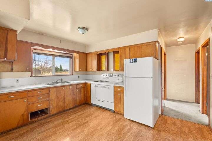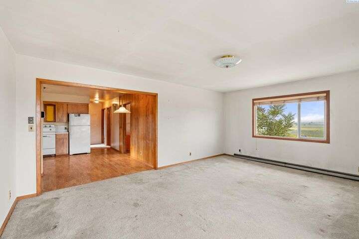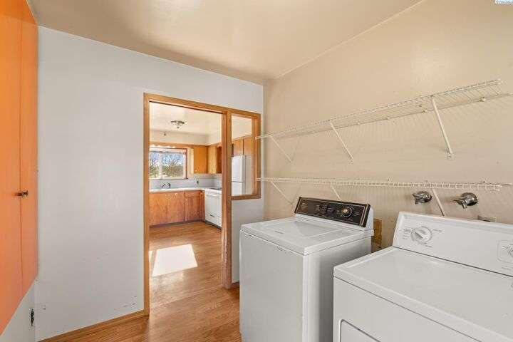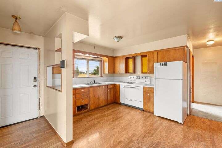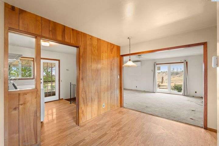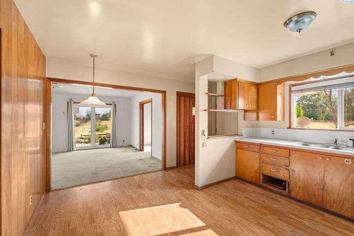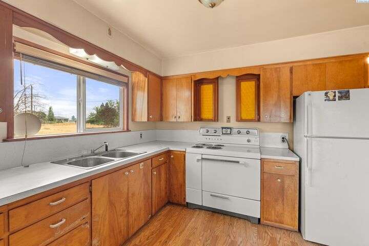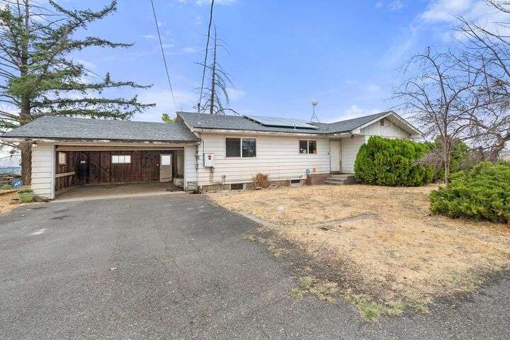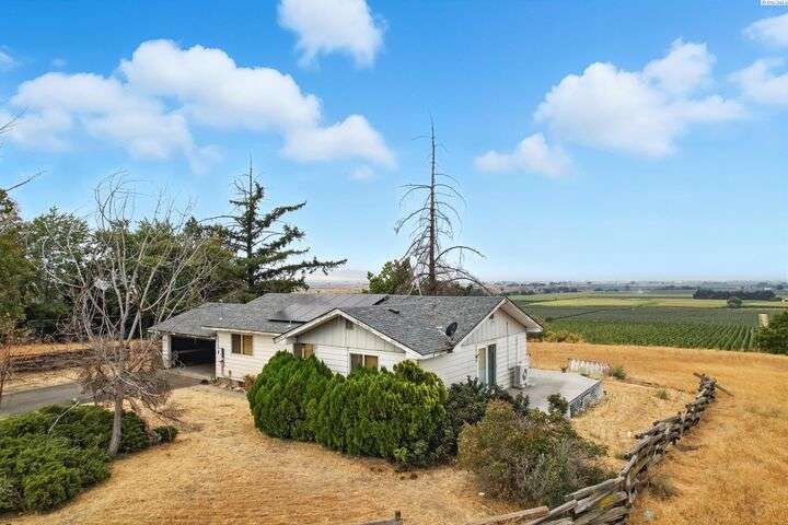 MLS# 286990 This charming 1958 ranch home features a functional basement and offers breathtaking panoramic views of the lower Yakima Valley. Situated on a generous 1.75-acre lot along Old Prosser Road (Old Inland Empire Highway) just outside of Prosser headed toward Grandview, this property presents an exceptional opportunity for buyers with vision. The main level offers two bedrooms, living room, and family room/den with abundant natural light, while the classic kitchen features an original range/oven from the home's 1958 era that adds vintage charm. Built-in cabinets throughout the home provide abundant storage, and the lower level includes a family room, additional bedroom with non-egress windows, and storage area. The property includes solar panels with an interior control panel and manual in good condition, private well water, plus water rights to irrigate up to 2 acres (SVID confirmed), an attached 2-car garage for convenient covered parking. This estate sale property is priced to sell AS IS. An ideal canvas for buyers ready to add their personal touches. With some carpet, paint and landscaping, this home could truly shine and showcase its amazing bones, period character, and unbeatable location. The combination of acreage, valley views, solar potential, and flexible living spaces makes this a rare find, perfect for those seeking country living with small-town convenience just minutes from Prosser's or Grandview amenities.