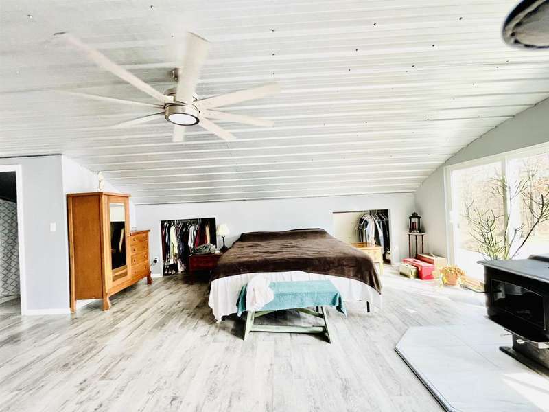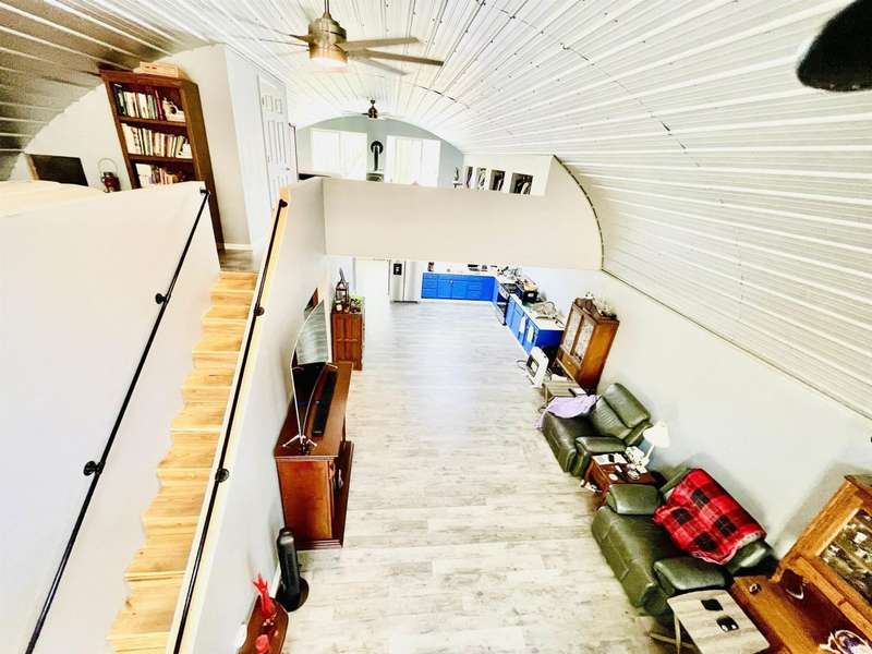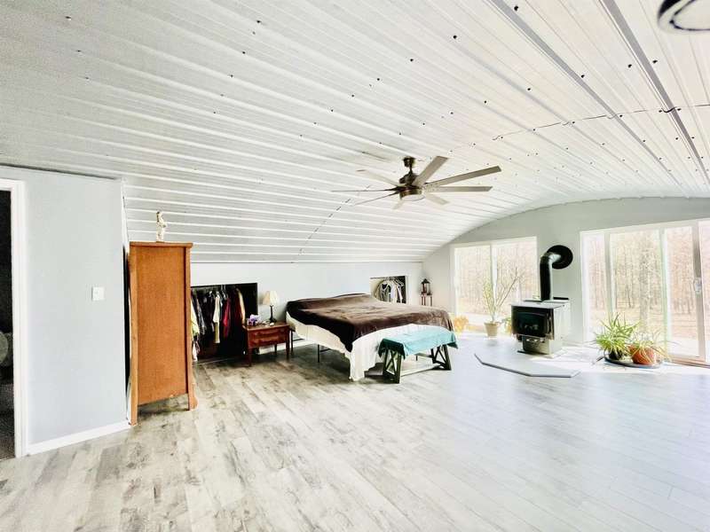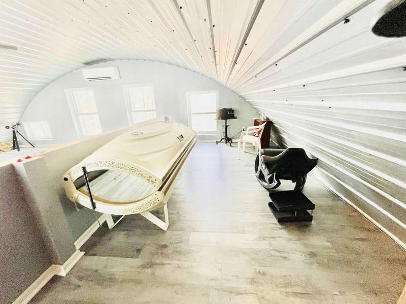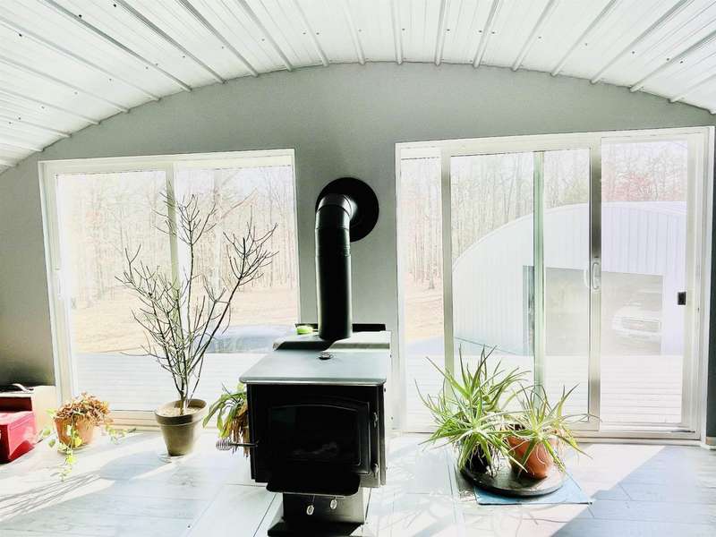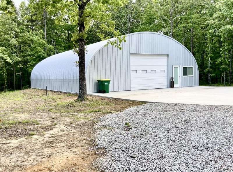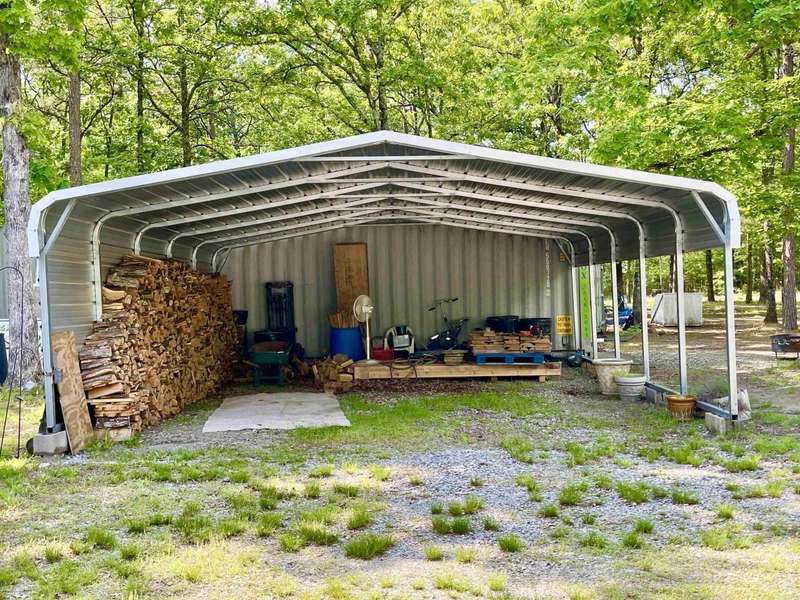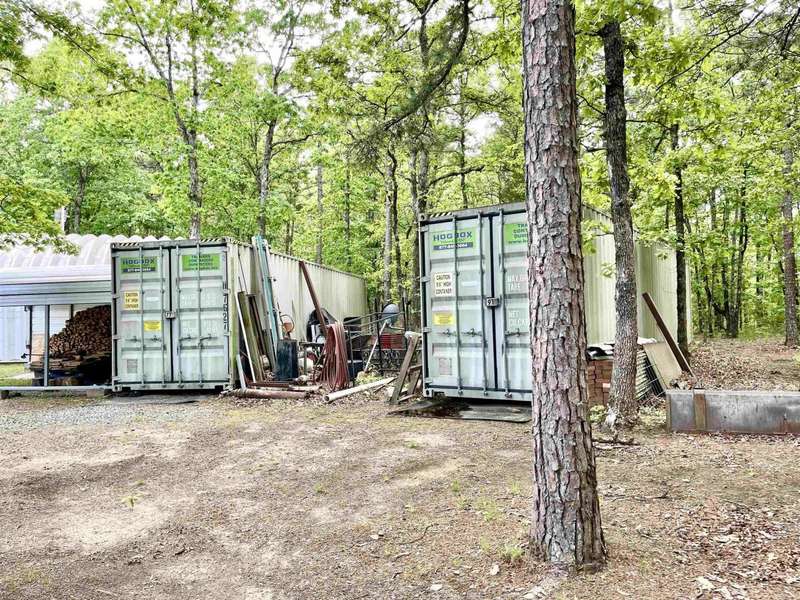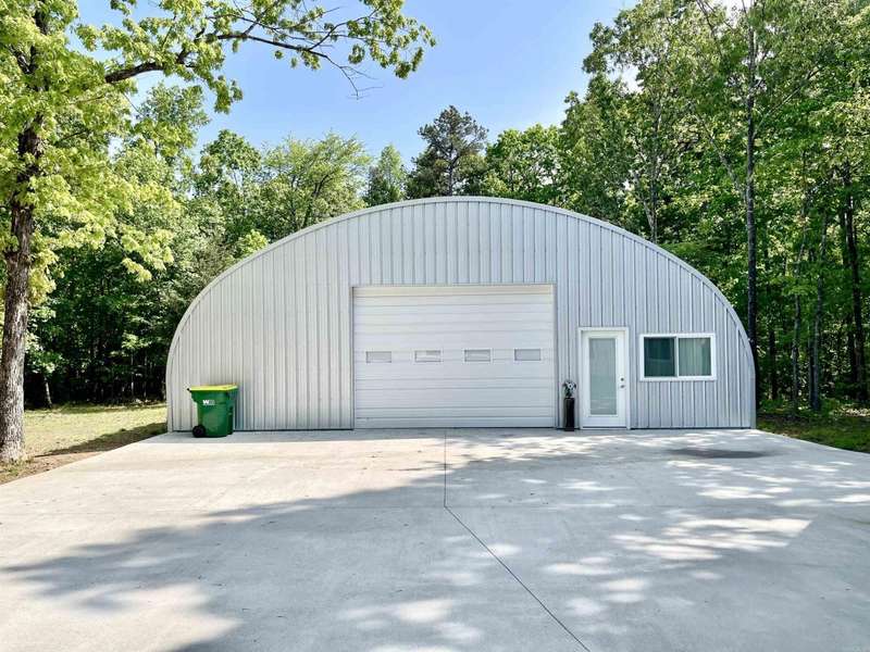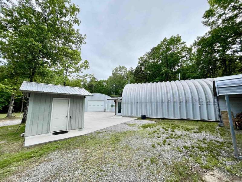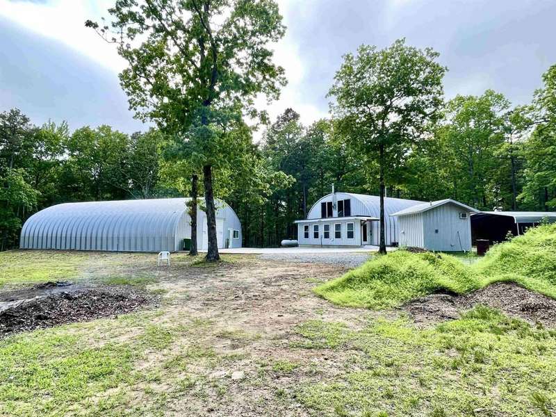Over 5 acres of privacy and within about 15 minutes of Greers Ferry Lake! WOW!! Quonset home is 30' X 50' and has 1 1/2 stories with approximately 2200 sq ft of living space! The workshop/boat storage, etc. is even larger - 40' X 58' and also has an upstairs! House boasts a living room, den/kitchen, 2 BR and 1 bath on main floor and 1 Bedroom and 1 Bath upstairs and space for an exercise room or office! There is a large 2 car carport and 2 large shipping containers for tons of storage! There are 3 mini split units and upstairs has a woodburning stove. Gas water heaters are tankless units and windows are Low-e windows! Shop building is insulated and has water so a bathroom or kitchen could probably be added if needed. Kitchen has beautiful marble countertops. House was built in 2022 and shop building was built in 2024. You do not want to miss this one!!